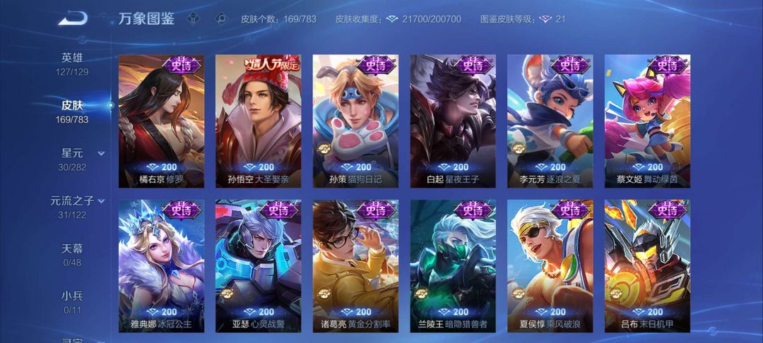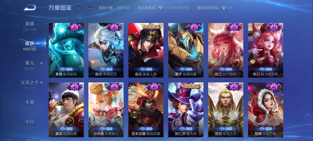V11✨780皮肤✨马年全皮✨颠倒童话✨千魇归渊✨无相✨神罪✨山海经天机白泽✨全套死神联动✨全套穆夏✨馥梦繁花✨美神临世✨全荣耀水晶✨全无双