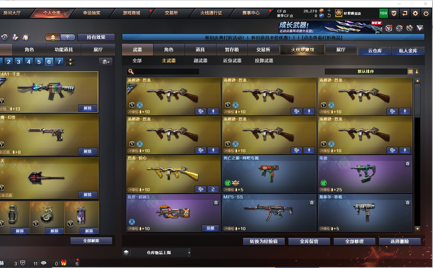 生化爆破全装;USP-雷暴,RPK-盘龙,QBZ03-金色蔷薇,M200-幻神,Scar Light-白虎,