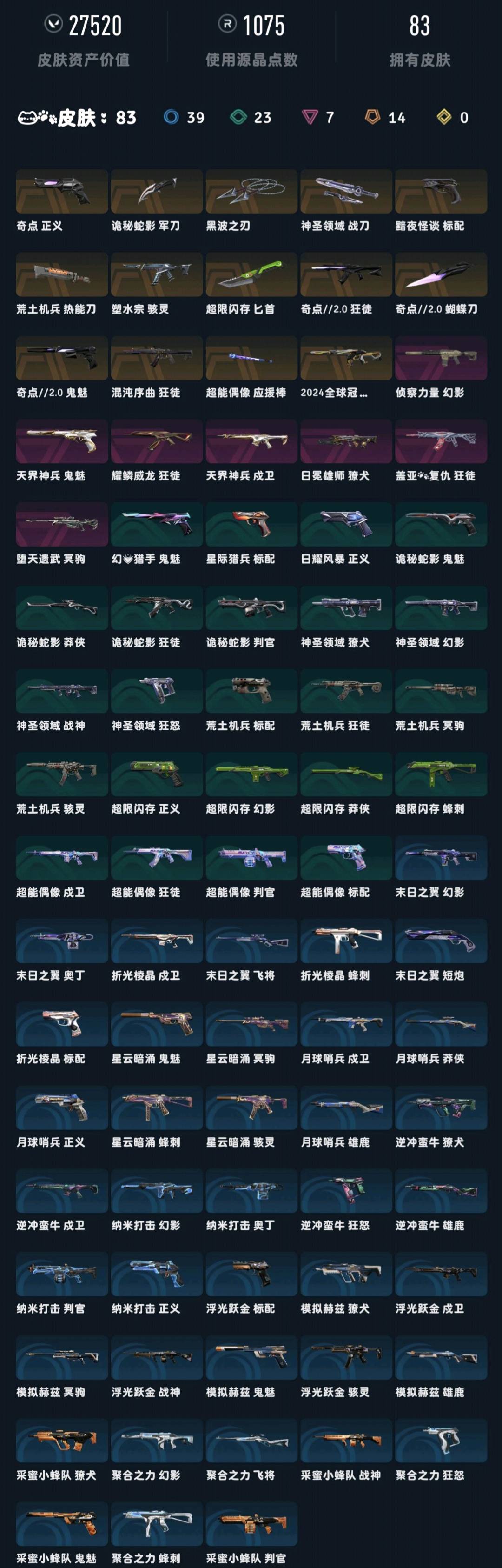 黑波奇点蝴蝶刀,24冠侦查幻影,混沌盖亚威龙奇点ak,天界戍卫鬼魅,奇点正义,堕天大狙,雄狮缭犬等