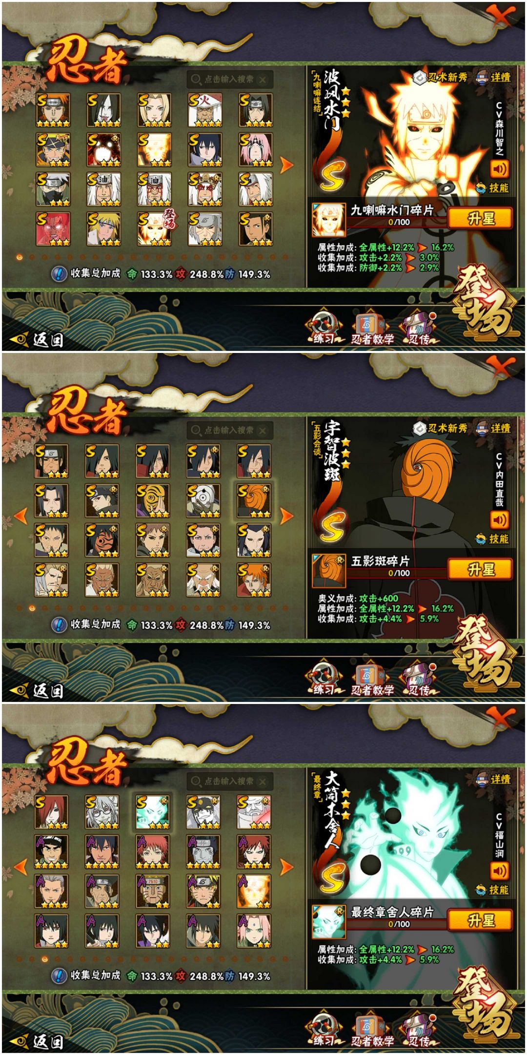 ⛔高品质店铺☀收藏小弟自动变长⛔下架无 〖图片、标题、描述一律真实|装备只多不少〗 S忍者: 【大野木 「忍界大战」,漩涡鸣人 「九喇嘛连结」,千手柱间 「木叶创立」❤大筒木舍人 「最终章」❤宇智波佐助 「永恒万花筒」,宇智波斑 「木叶创立」❤宇智波带土 「忍界大战」❤千手柱间 「秽土转生」,大筒木桃式,罗砂 「四代目风影」,宇智波鼬 「秽土转生」,自来也 「舞之豪杰」❤佩恩·天道 「超」❤药师兜 「仙人模式」,宇智波斑 「秽土转生」,艾 「三代目雷影」,“宇智波斑” 「白面具」,千手扉间 「秽土转生」❤漩涡鸣人 「暴怒·第六尾」❤烈斗 「初代目风影」,宇智波止水 「须佐能乎」,艾 「忍界大战」❤自来也 「传说中的三忍」❤漩涡鸣人·宇智波佐助, 大蛇丸,纲手,鬼灯幻月 「二代目水影」,佩恩 「天道」,神秘面具男,自来也 「仙人模式」,宇智波斑,宇智波鼬 「须佐能乎」,猿飞日斩,长门 「秽土转生」,自来也,三代目风影 「秽土转生」,神秘面具男 「红夜之刃」,宇智波斑 「秽土转生·解」,春野樱 「忍界大战」,大筒木金式❤波风水门 「九喇嘛连结」❤旗木卡卡西 「须佐能乎」❤迈特凯 「死门」