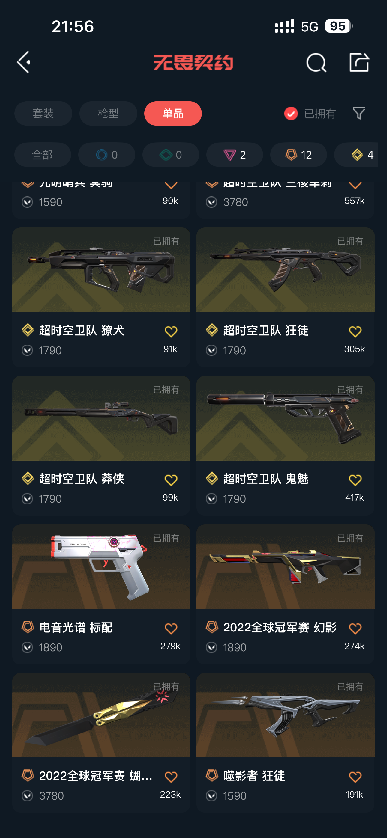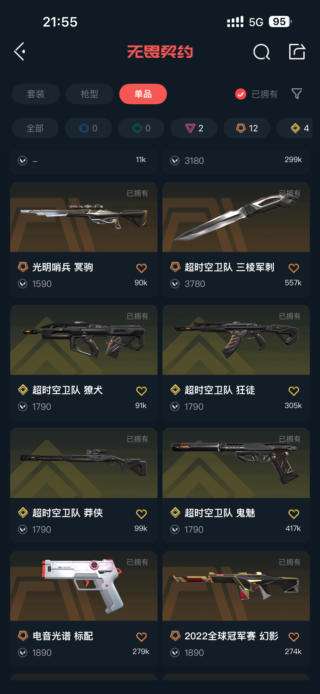 三棱军刺,神之刃,22冠军蝴蝶,超时空全套,西部正义,噬影者,莲花,超时空狂徒,般若,神中神罚,22冠军幻影,光明哨兵大狙;噬影者 狂徒,西部未来 正义,