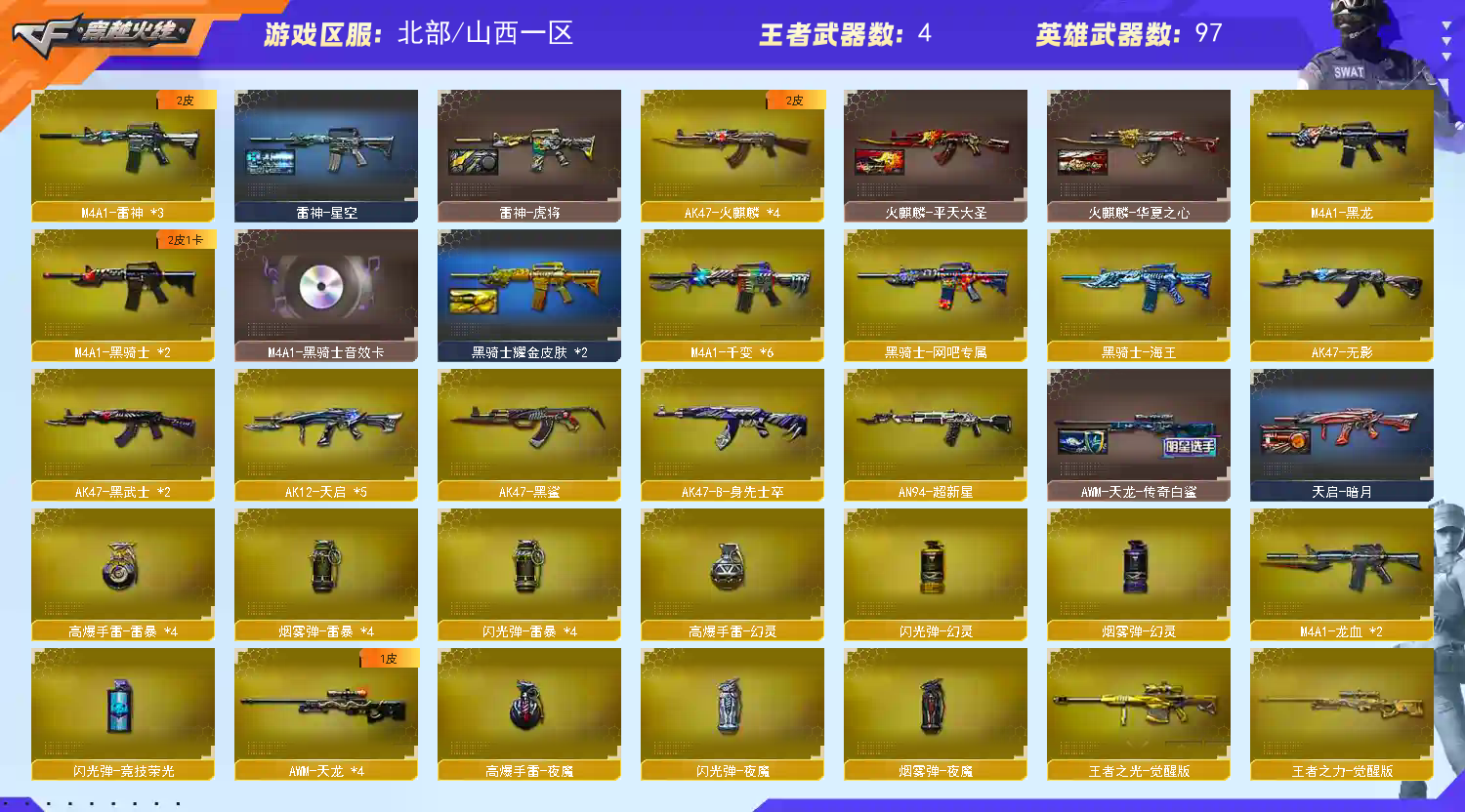• 游戏区服:穿越火线 / 北部 / 山西一区