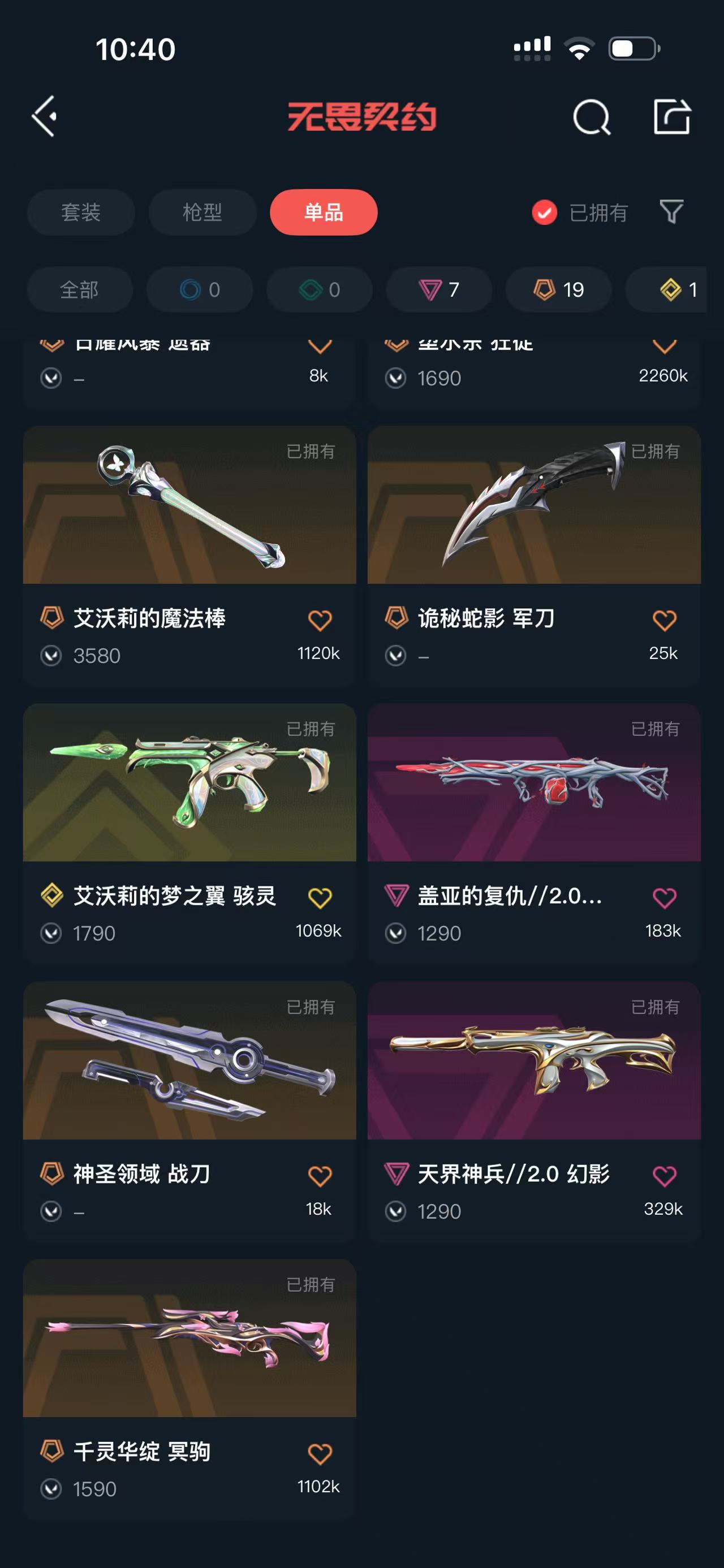 • 传奇数量: 19