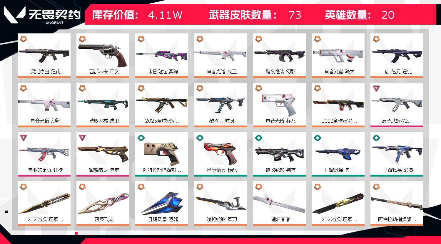 可排位 22冠军套-25冠军套-电音光谱套-黯夜怪谈幻影-盖亚创纪元混沌离子狂徒-西部正义-破败戍卫-莲花刀 禁止开挂禁止开挂;盖亚的复仇 狂徒,混沌序曲 狂徒,离子武器//2.0 狂徒,西部未来 正义,