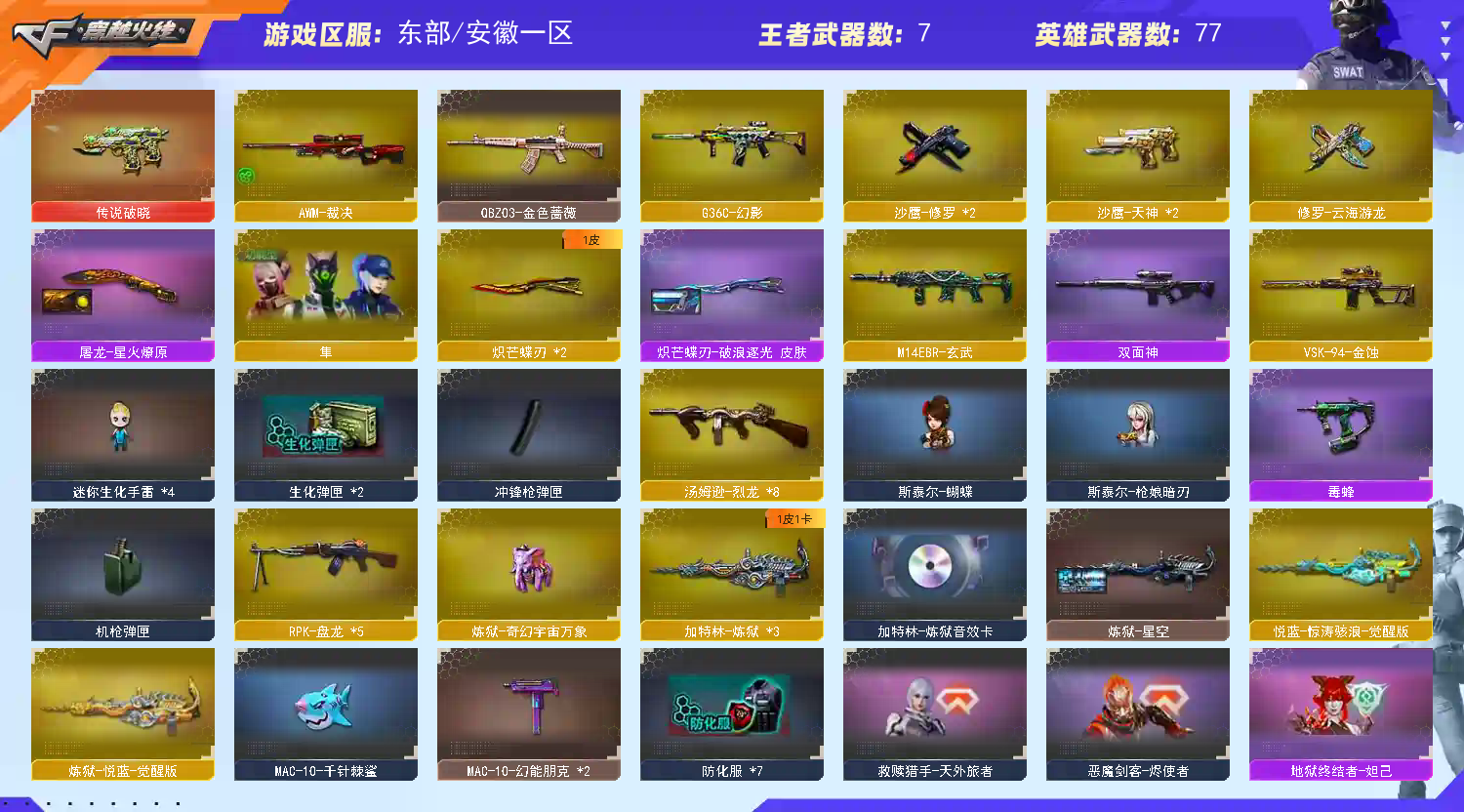 • 游戏区服:穿越火线 / 电信区 / 安徽一区
