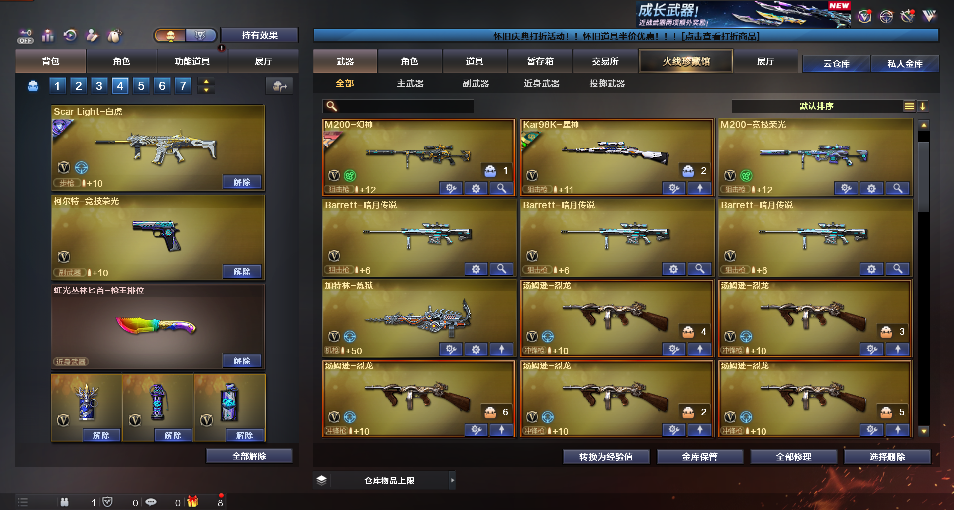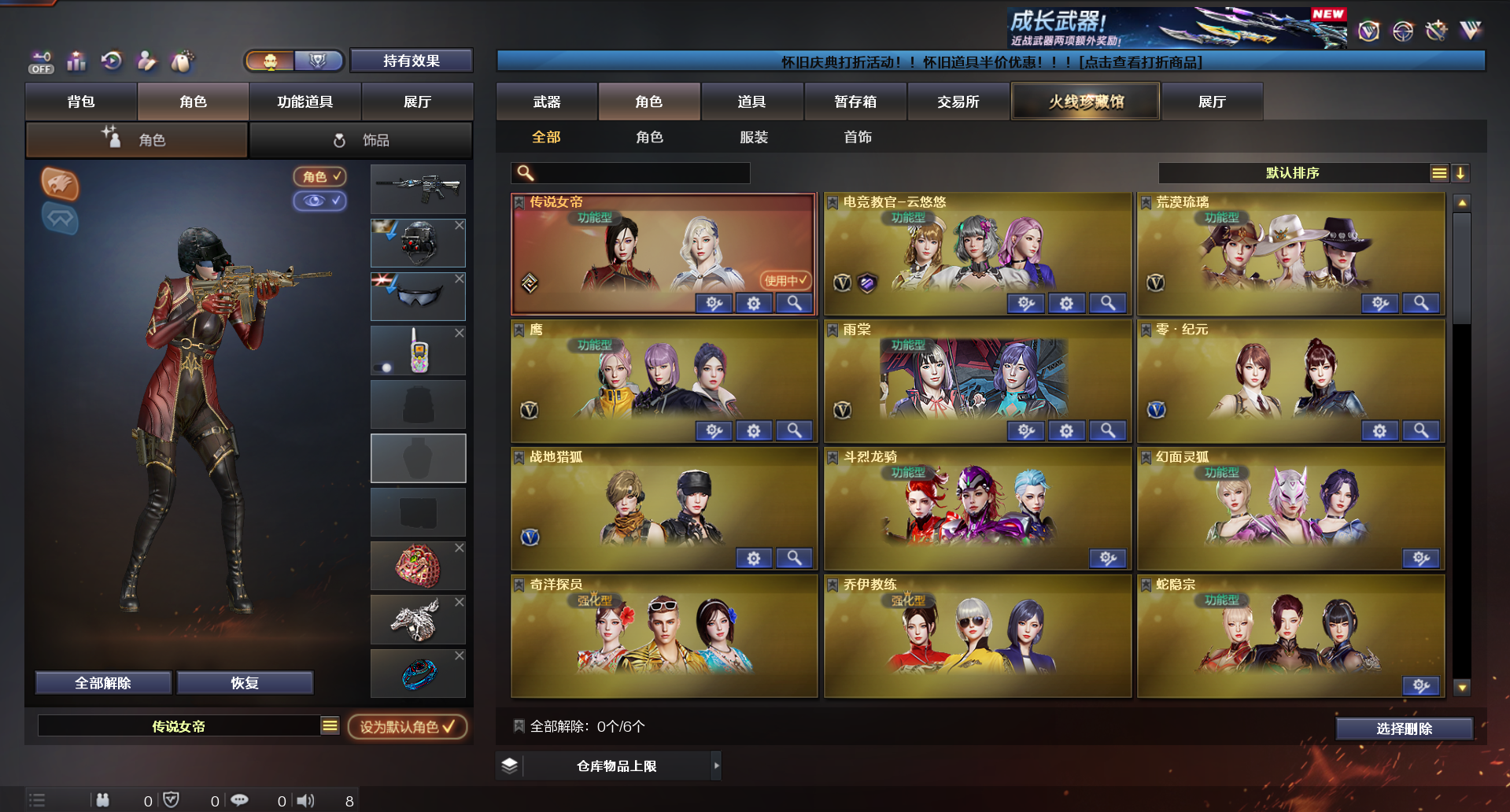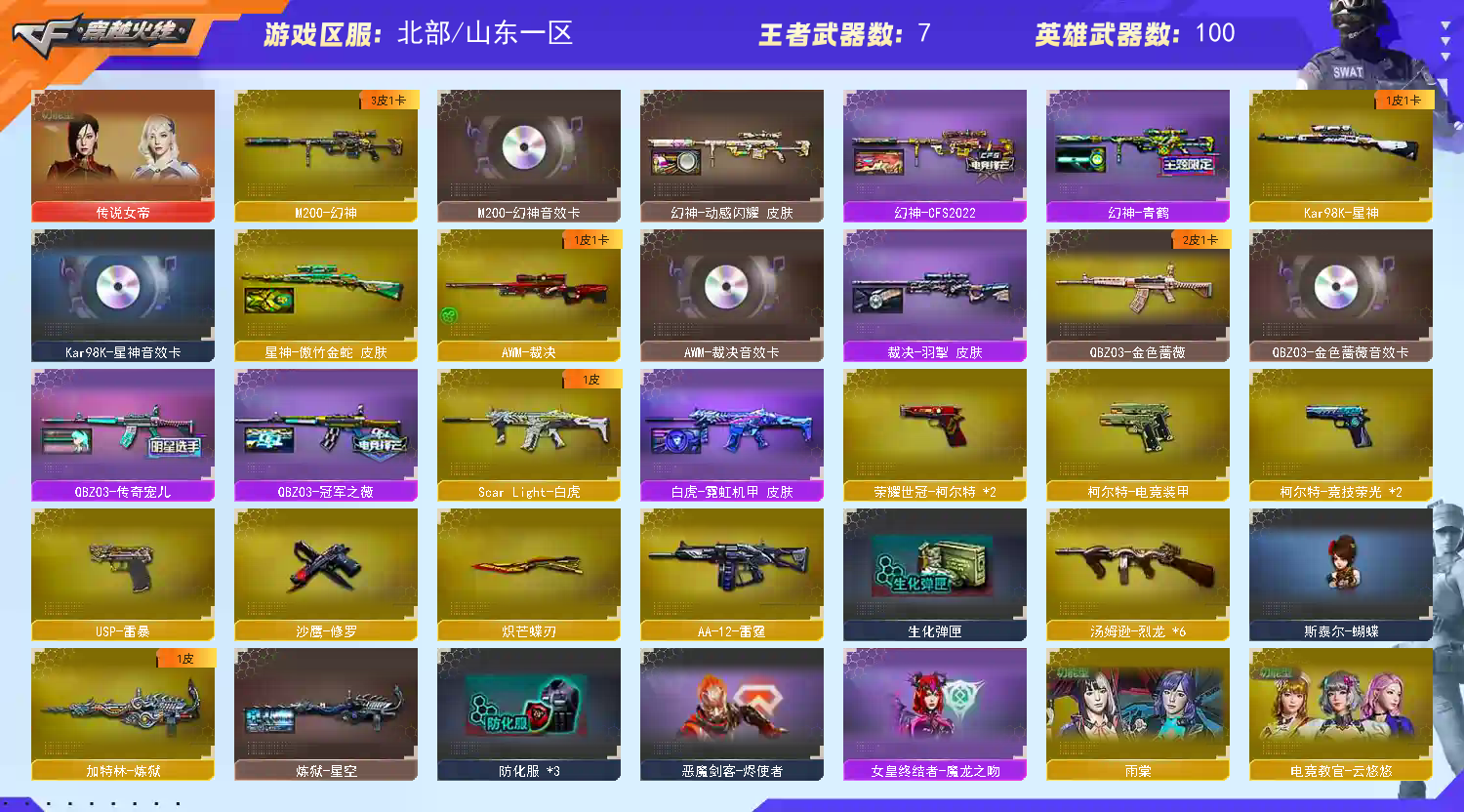 女帝四防+幻神三件套带卡+裁决三件套带卡+星神三件套带卡+白虎带皮+qbz三件套带卡+鲨臂+雷神三件