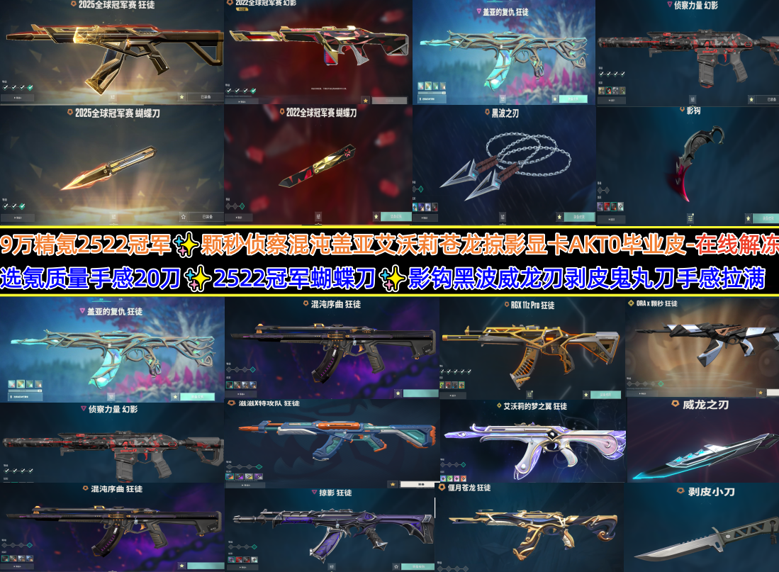 -在线解冻- 9万精氪2522冠军✨颗秒侦察混沌盖亚艾沃莉苍龙掠影显卡AKT0毕业皮 选氪质量手感20刀✨2522冠军蝴蝶刀✨影钩黑波威龙刃剥皮鬼丸刀手感拉满;黑波之刃,5周年//公测重制版 苍龙之刃,剥皮小刀,威龙之刃,起源 雄鹿,盖亚的复仇 狂徒,掠影 狂徒,