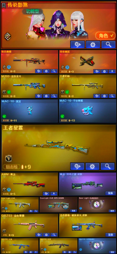 【东.部】天花板♥幻神星火8皮三件套♥裁决巅峰三件套星神璀璨♥qbz冠军拼搏三件套白虎AG三件套满副;传说幽冥,柯尔特-冠军之特,炽芒蝶刃,传说影煞,RPK-盘龙,QBZ03-金色蔷薇,传说幽瞳,