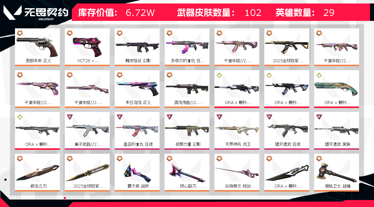 • 皮肤资产价值: 67170