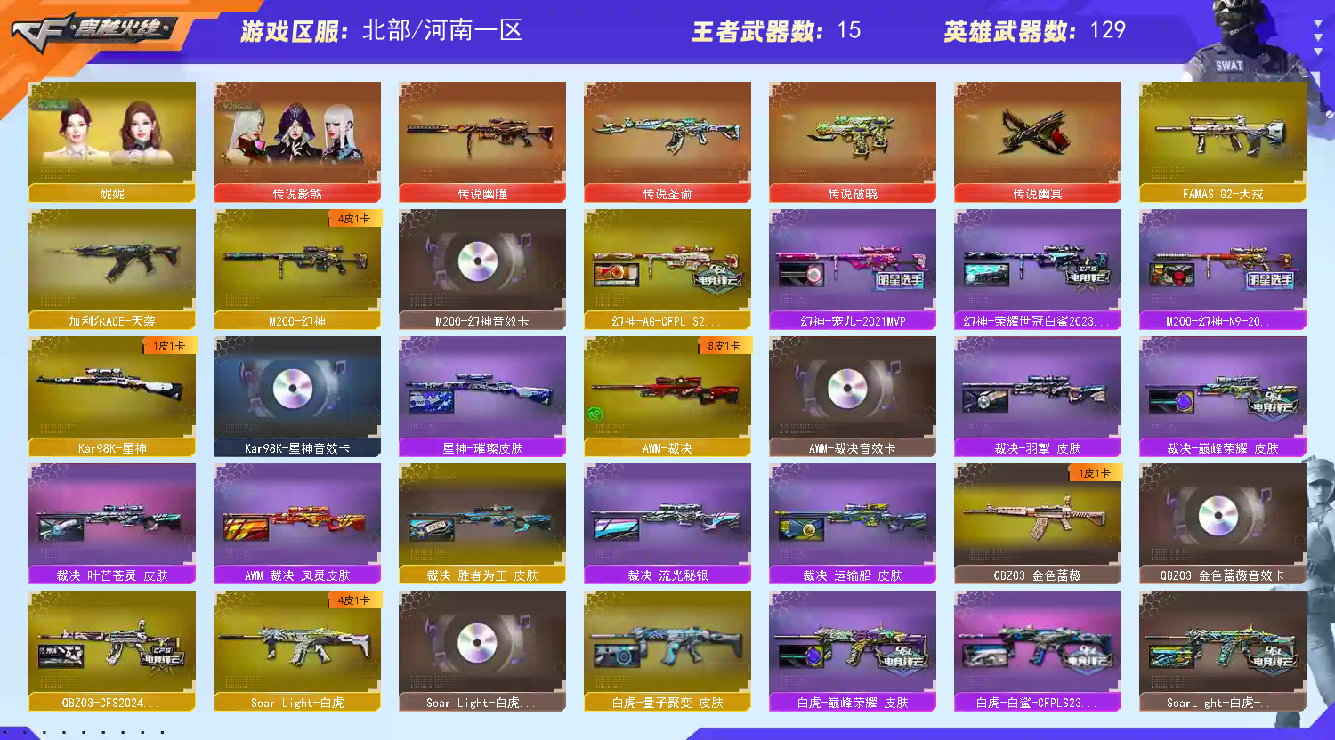 白虎金色蔷薇幻音加利尔热门枪械,角色鹰晴雅隼王者春;