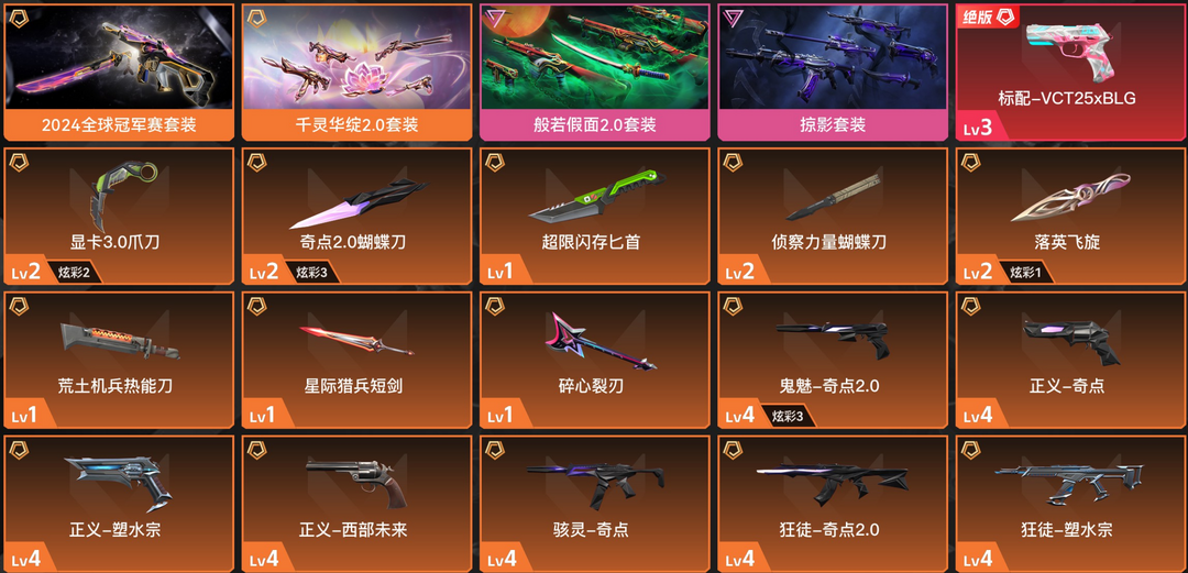 可排位✅顶级10W库存✅24冠军套⭐显卡爪刀⭐千灵华绽2.0套⭐般若假面套⭐掠影套装⭐奇点2.0套⭐
