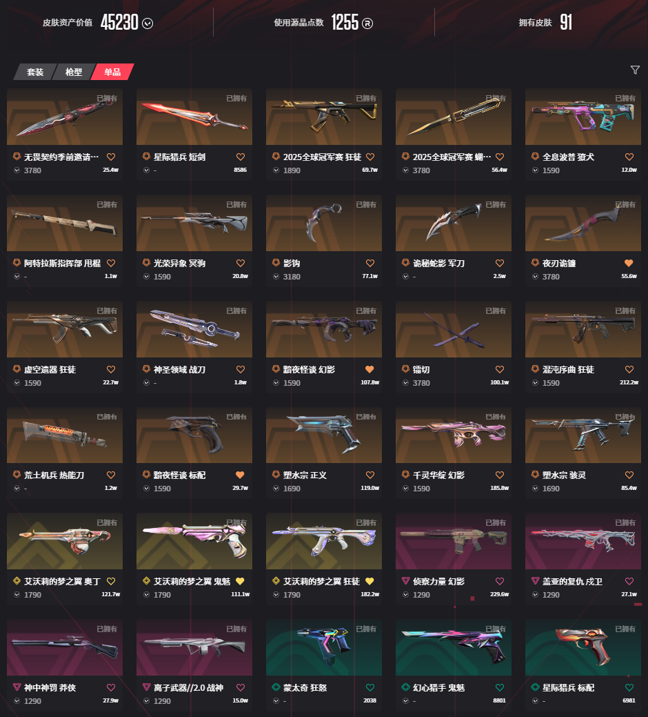 • 皮肤资产价值: 45230