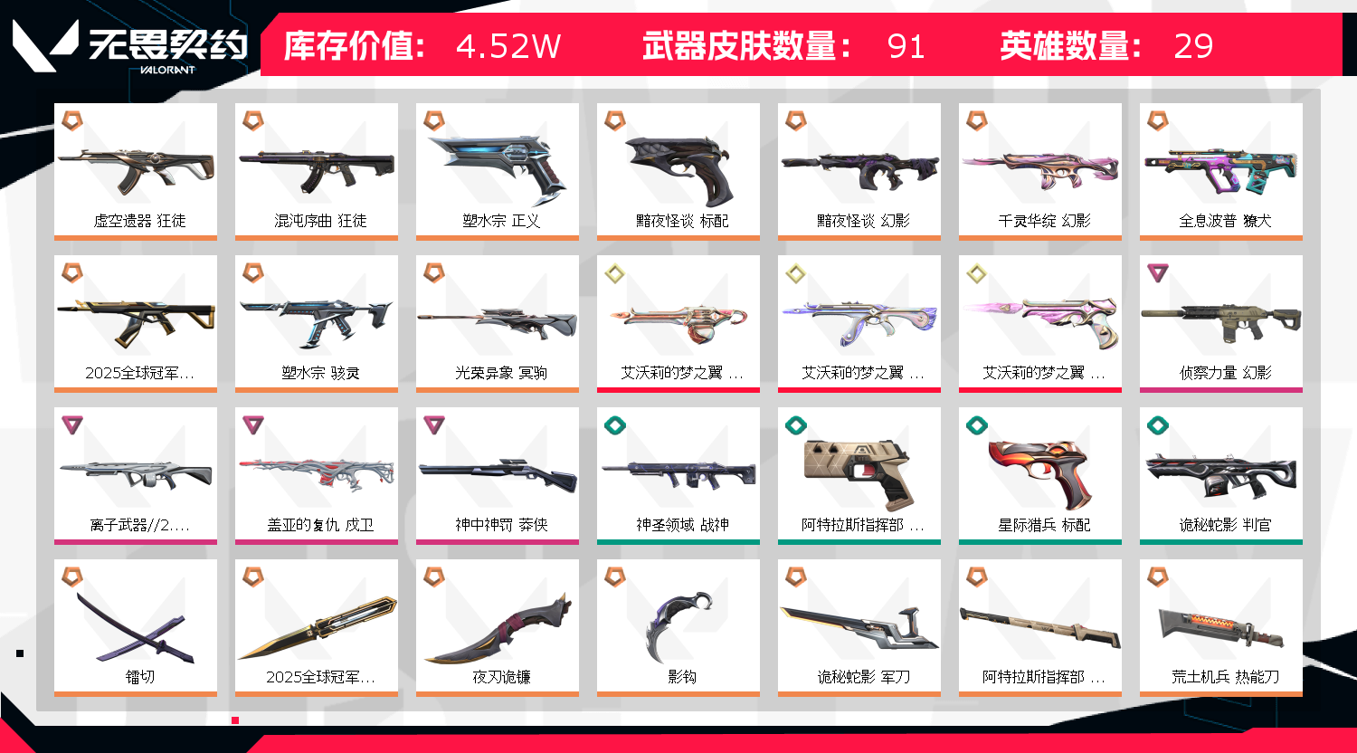 • 武器皮肤数量: 91