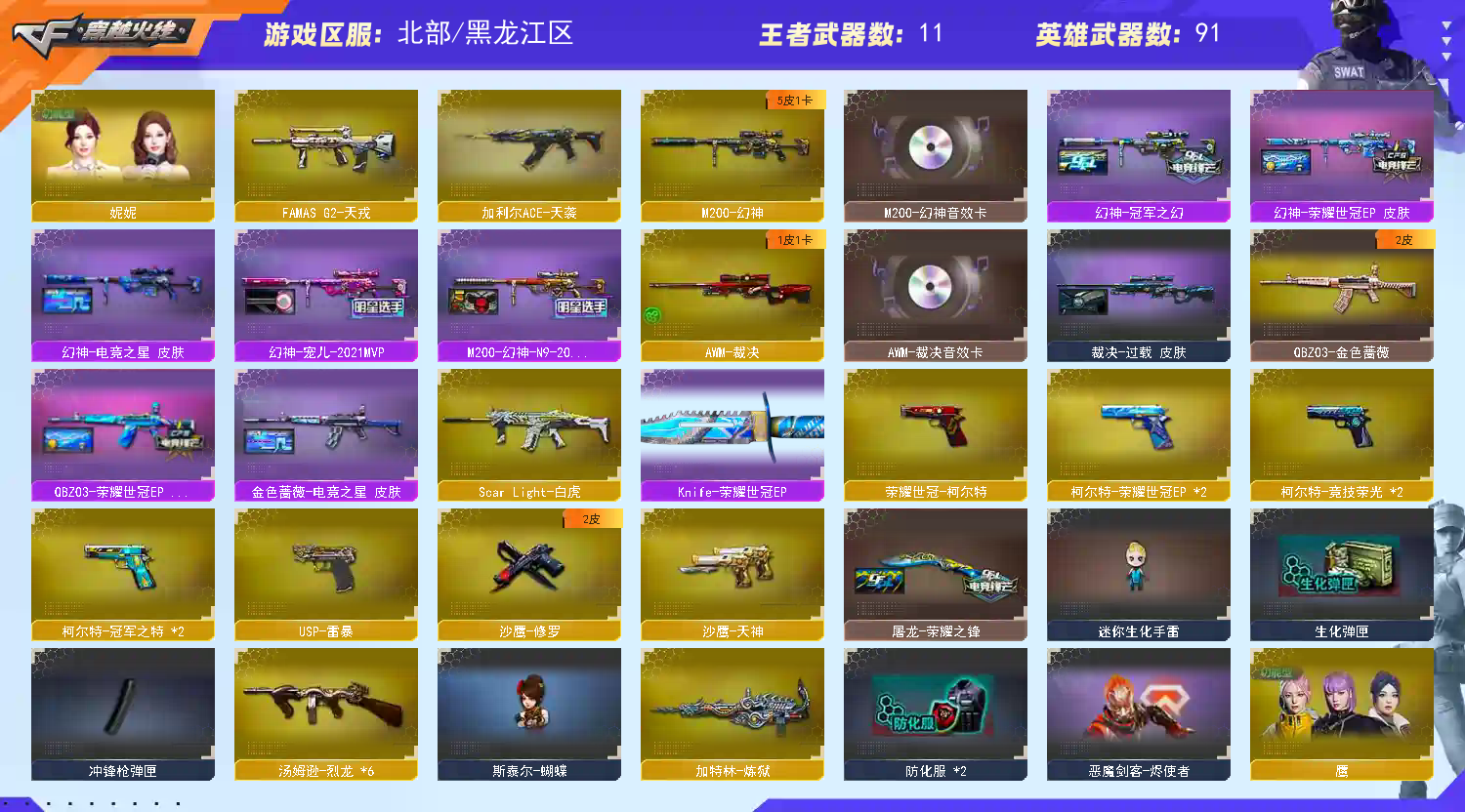 优质爆破号 EP世冠全套 幻神EP世冠 宠儿 N9 冠幻 电竞之星精品5皮肤 裁决三件套 王者星神 天袭 天戎 白虎 qbzEP世冠皮肤 两把EP世冠柯尔特 两把冠特 usp雷暴 顶配8副手 荣耀世冠套 爆破人气角色 四防妮妮 四防鹰 6烈蝴蝶 佣兵觉醒不换弹!! 禁止开挂!! 租号都是实名 违者必起诉 现在排位机制 中途退赛会导致禁赛 请老板排位不要中途退出 中途退出导致禁赛 会永久拉黑!希望共同一起创建文明租号环境 欢迎各位老板下单体验!!;USP-雷暴,荣耀世冠-柯尔特,柯尔特-冠军之特,妮妮,QBZ03-金色蔷薇,M200-幻神,Scar Light-白虎,