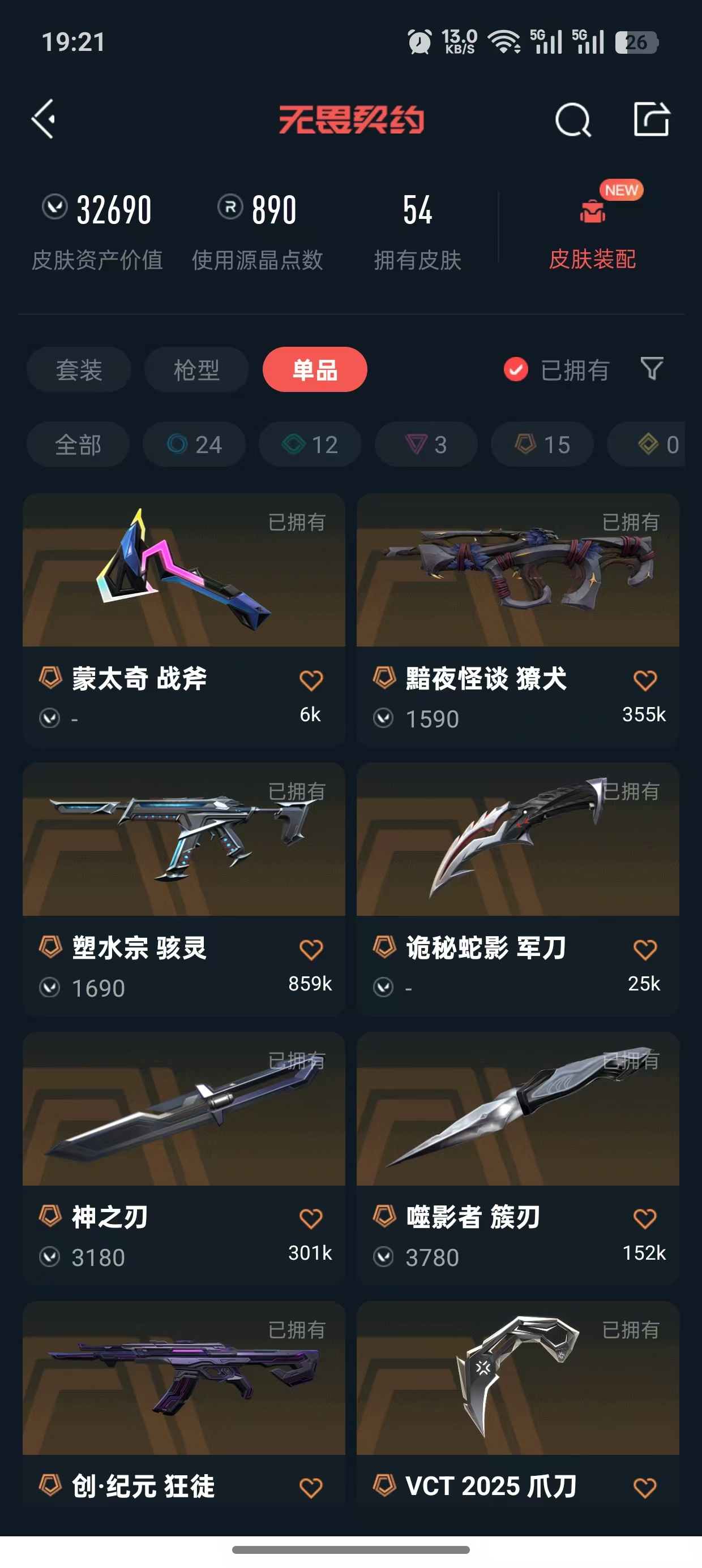 • 皮肤资产价值: 32690