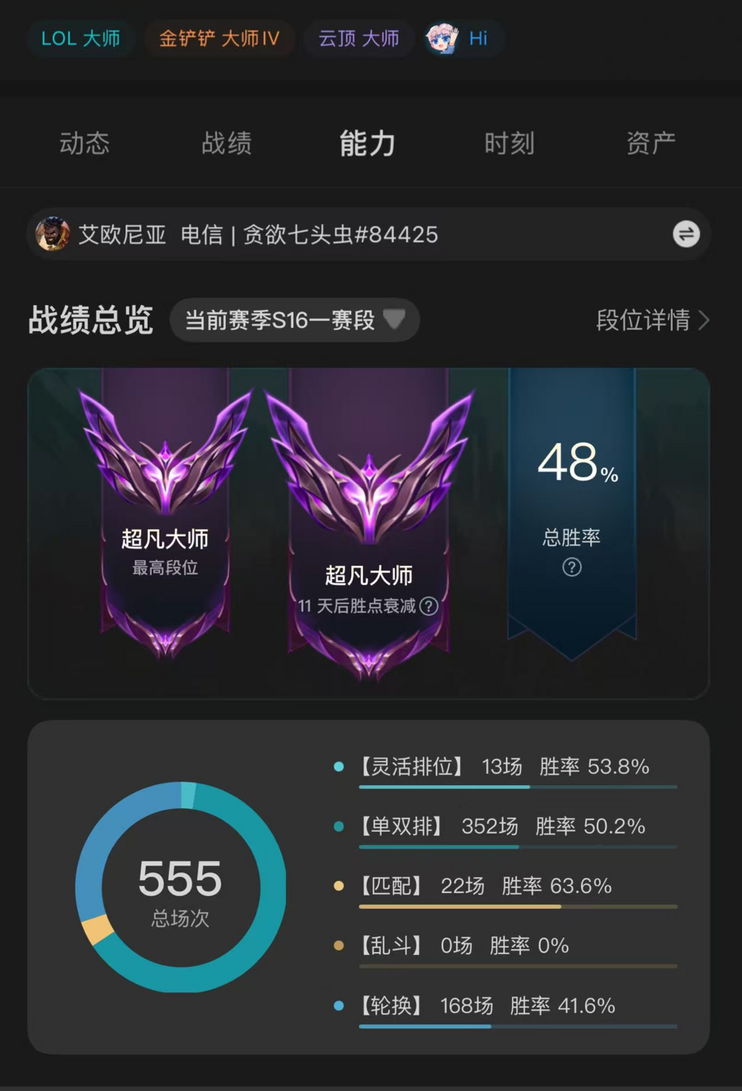 艾欧尼亚1354皮⚡62神话至臻⚡单双排大师云顶大师可排位⚡T1杰斯⚡kda卡沙等