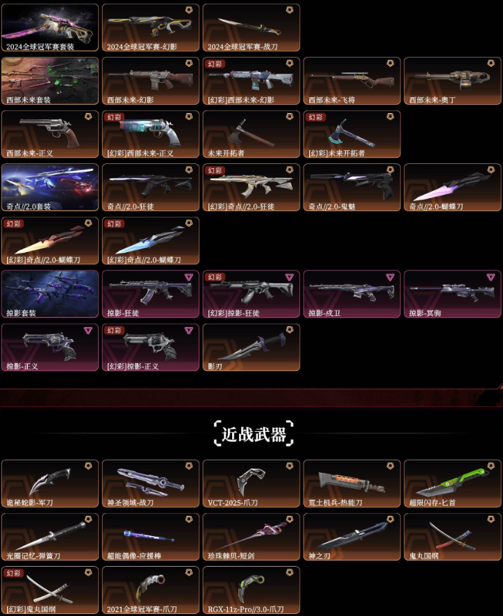 可排位大库存☆2024套☆奇点套☆西部套☆掠影☆RGX☆VCT☆塑水宗☆混沌☆紫金☆盖亚各种散件炫彩