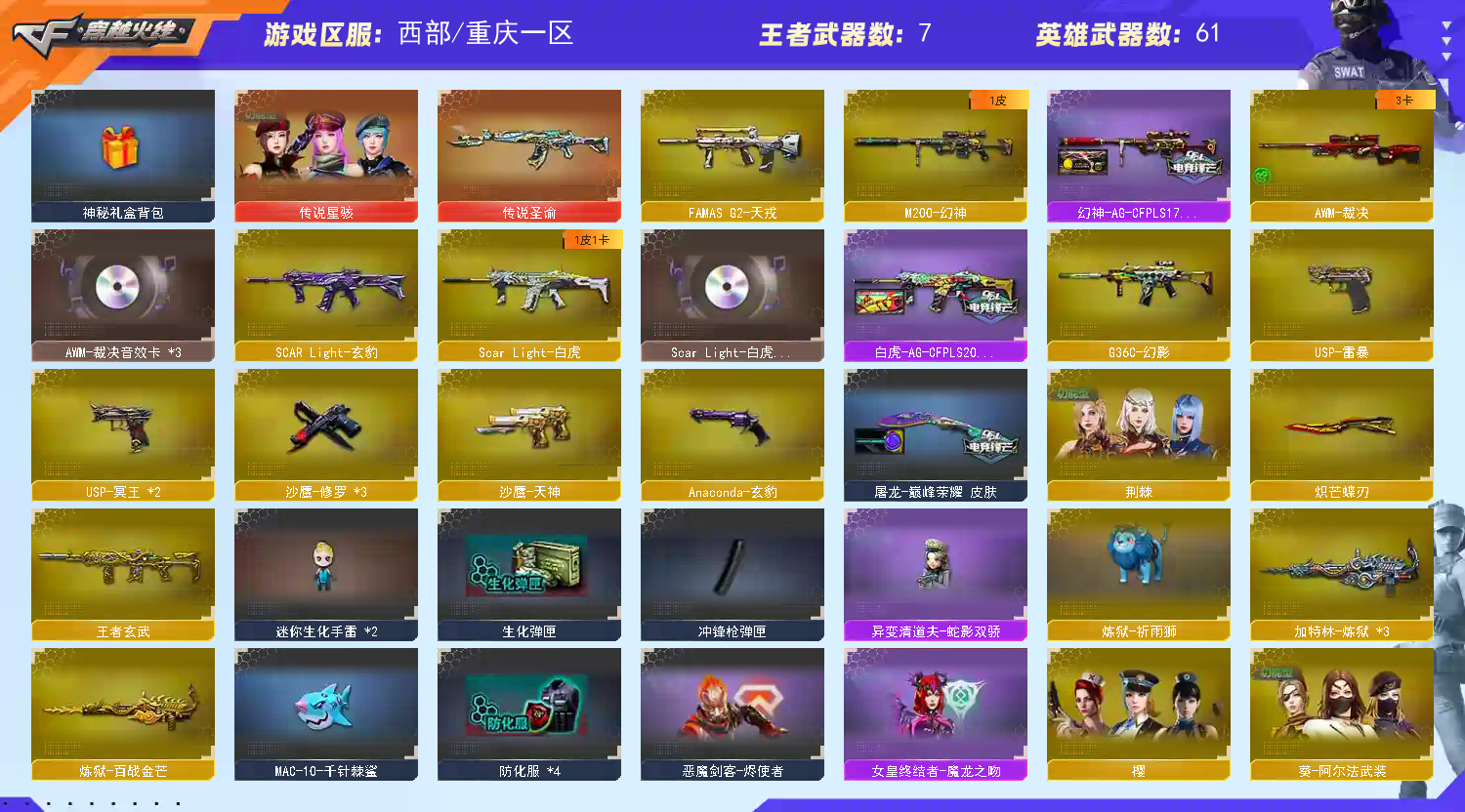 • 游戏区服:穿越火线 / 西部 / 重庆一区