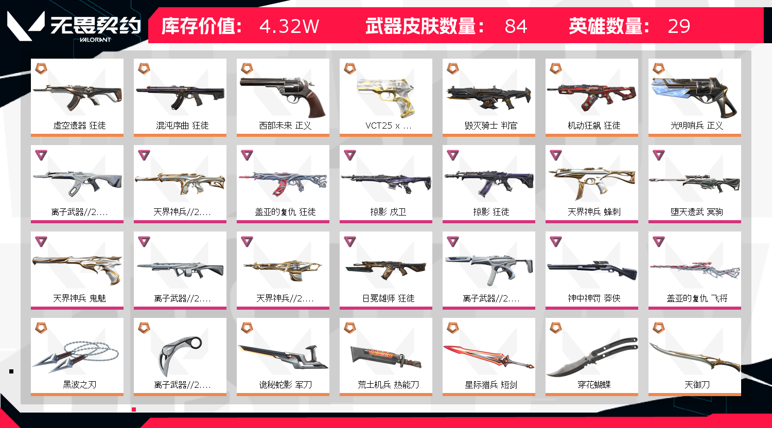 • 武器皮肤数量: 84