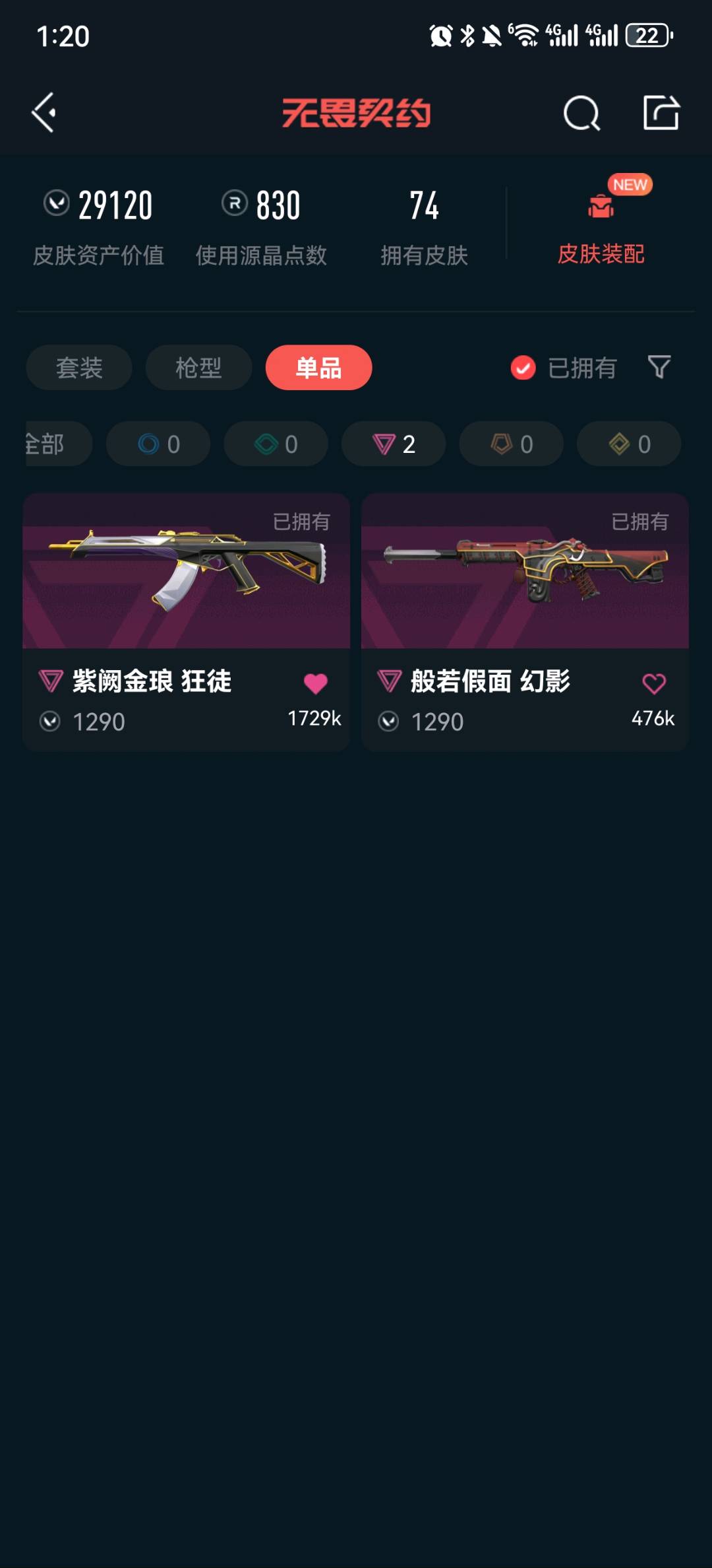 • 皮肤资产价值: 29120