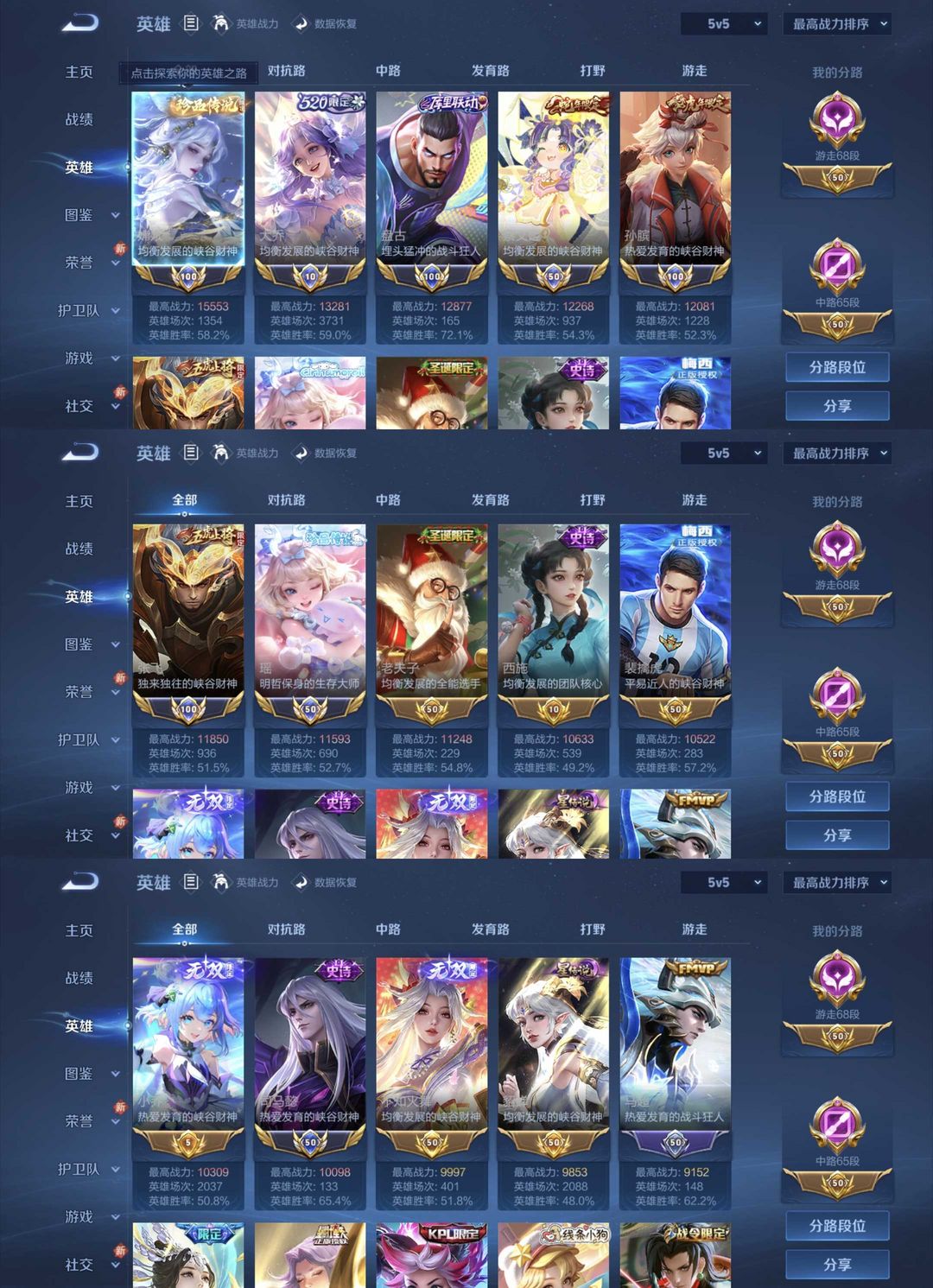 V10中路游走双68段魔方号♉梅西♉4典7珍品限定74传8星♉百星历史巅峰千强1.5万国服瑶大乔孙膑