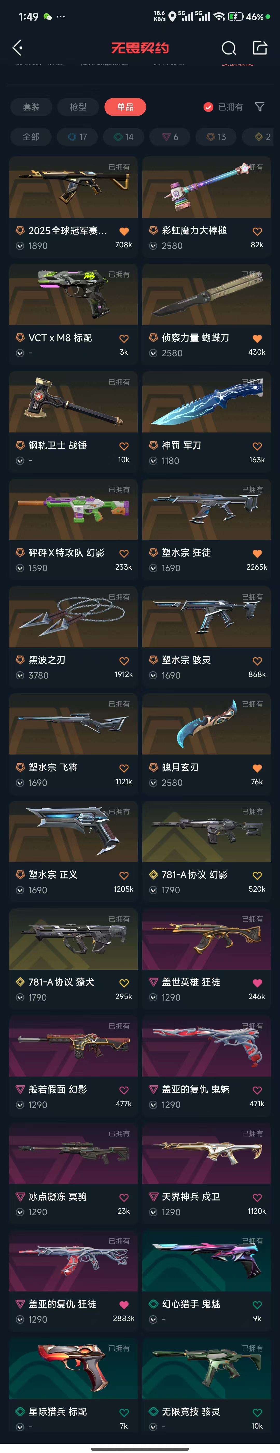 塑水套、盖亚狂徒,天界戍卫,神罚小刀,彩虹魔力大棒槌,25冠军狂徒,恶鬼幻影,猴子狂徒
