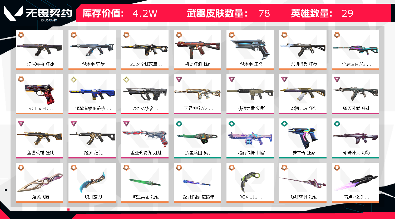 • 皮肤资产价值: 42030