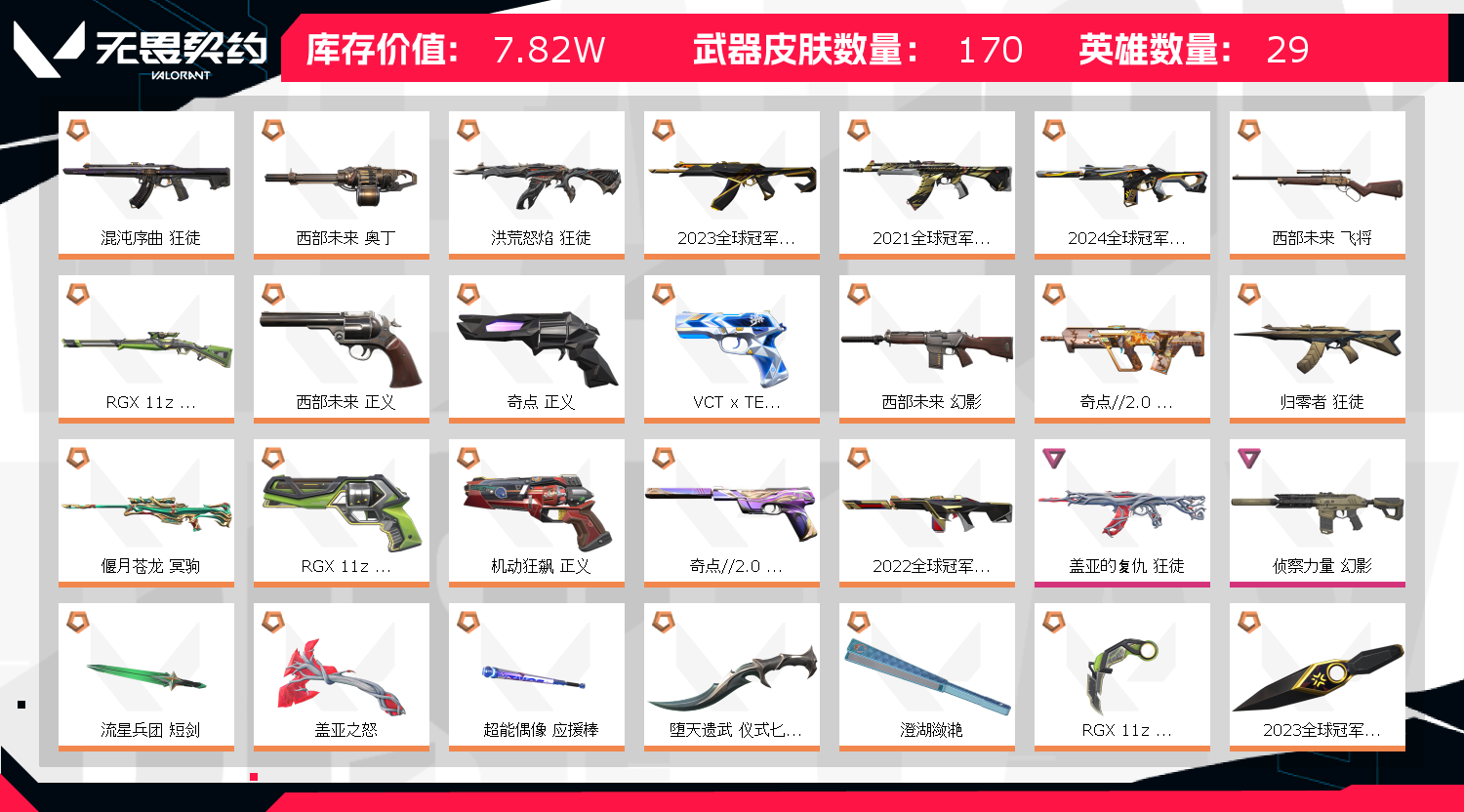 • 皮肤资产价值: 78190