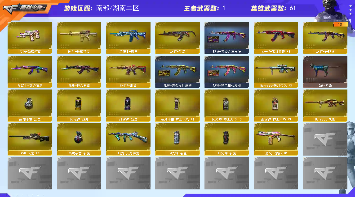 • 游戏区服:穿越火线 / 南部 / 湖南二区