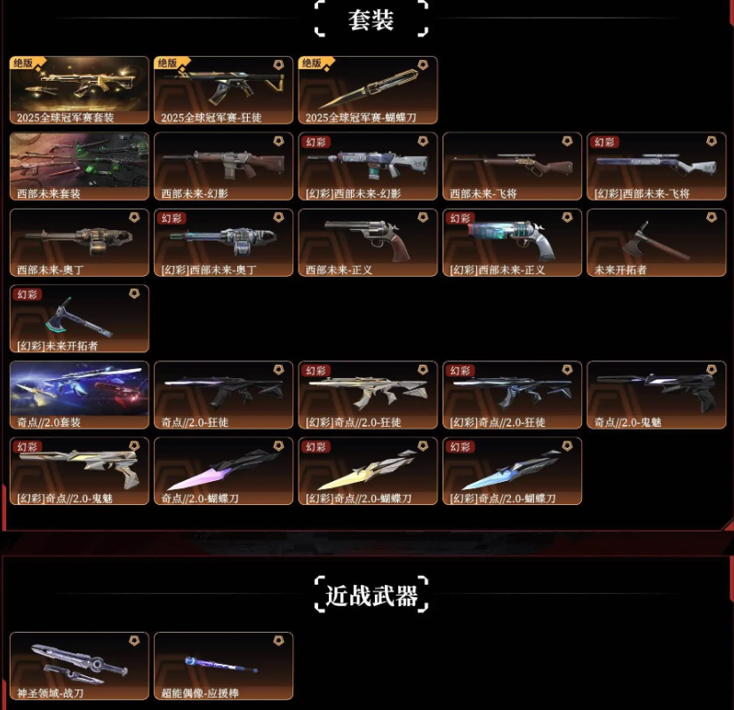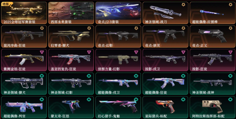 25冠军套❀西部套❀奇点20套❀混沌盖亚紫金掠影狂徒❀奇点侦察幻影❀掠影戍卫❀归零獠犬❀奇点骇灵正义