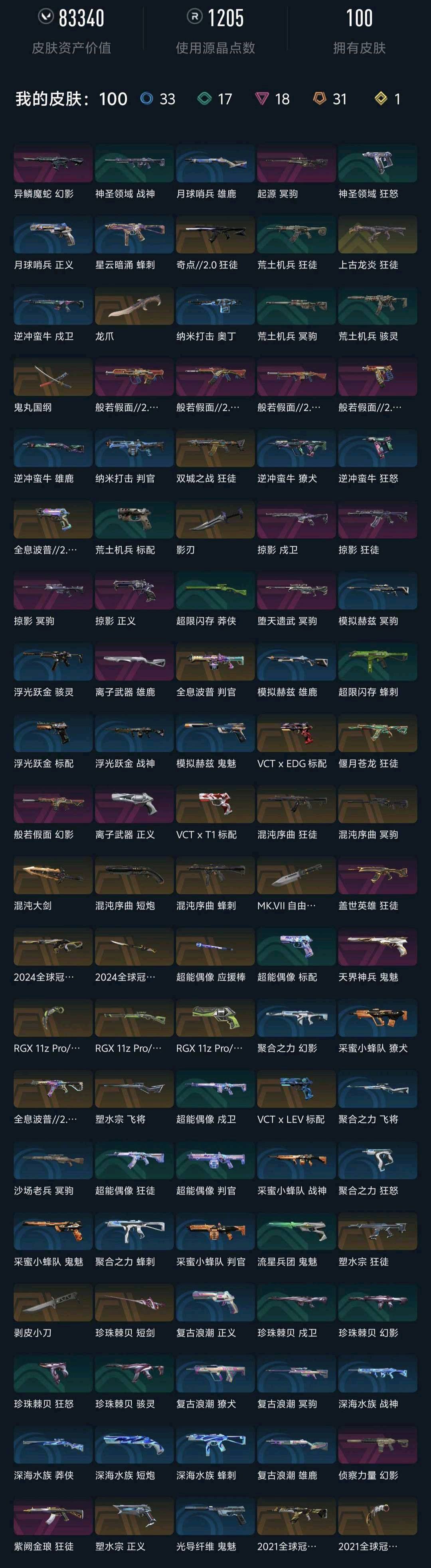 • 皮肤资产价值: 83340