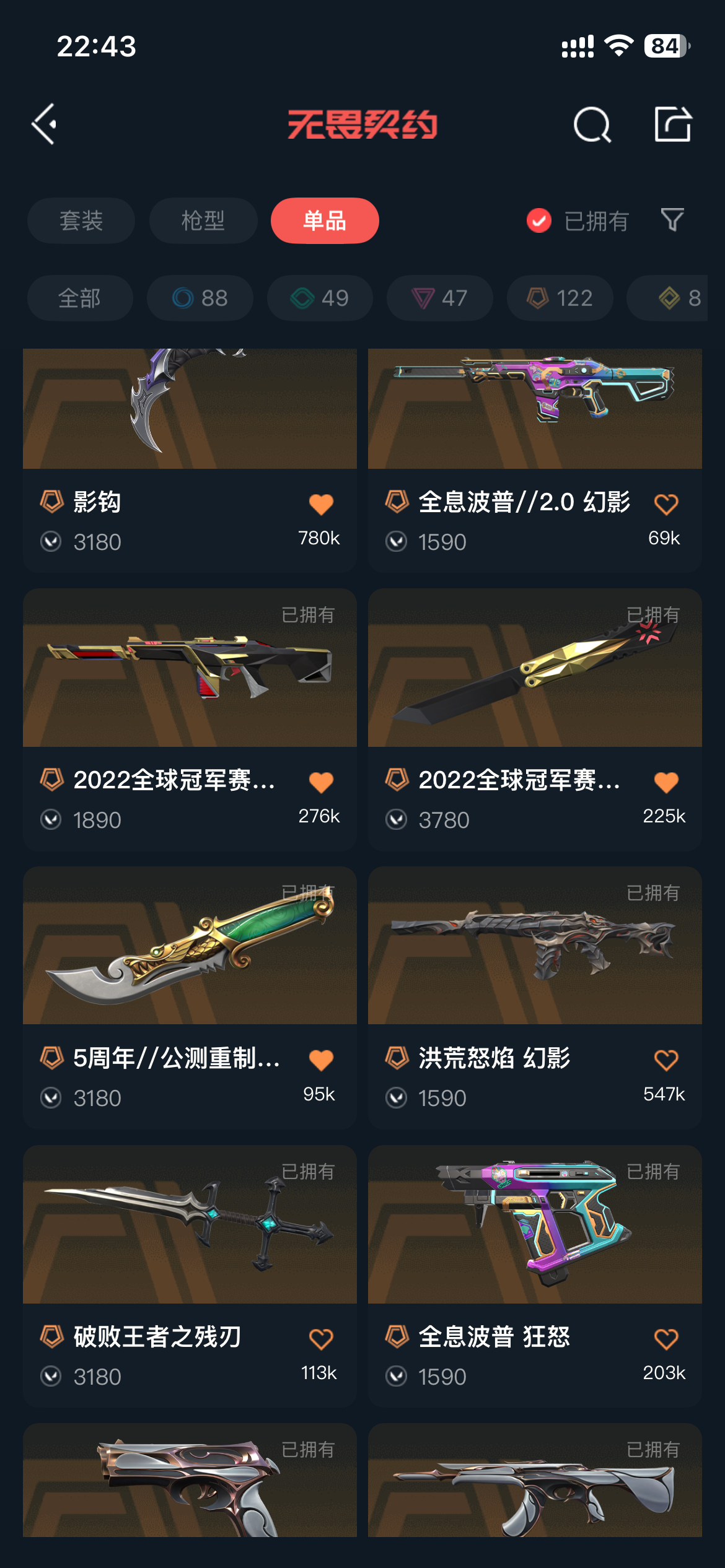 • 皮肤资产价值: 325590