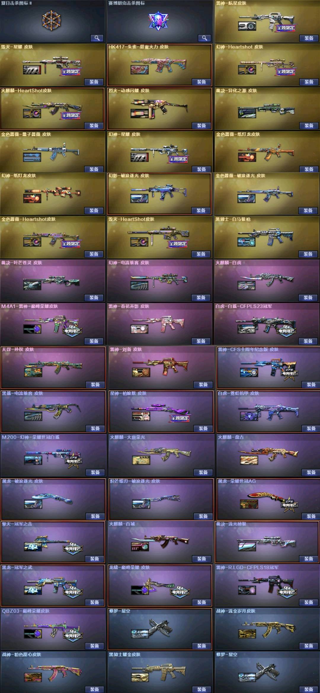 四防神威莲华生化爆破顶尖5烈龙5盘龙可主救世主宙斯喷子镇魔者不退包2蝴蝶叨带航空狮子蝴蝶斯太尔清道夫毒蜂4炼狱MAC龙宝飓风双雄幻神裁决星神白虎qbz三件套多皮天袭幻影多个主流枪多个主流音效卡、生化多幽灵和猎手皮肤雷暴手枪等多个质量手枪等;