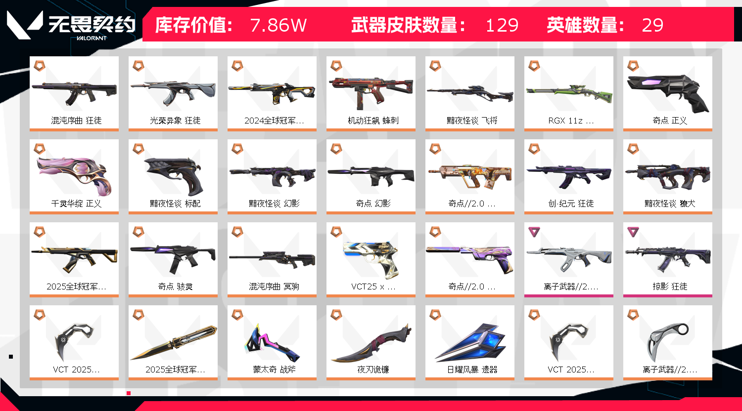• 武器皮肤数量: 129