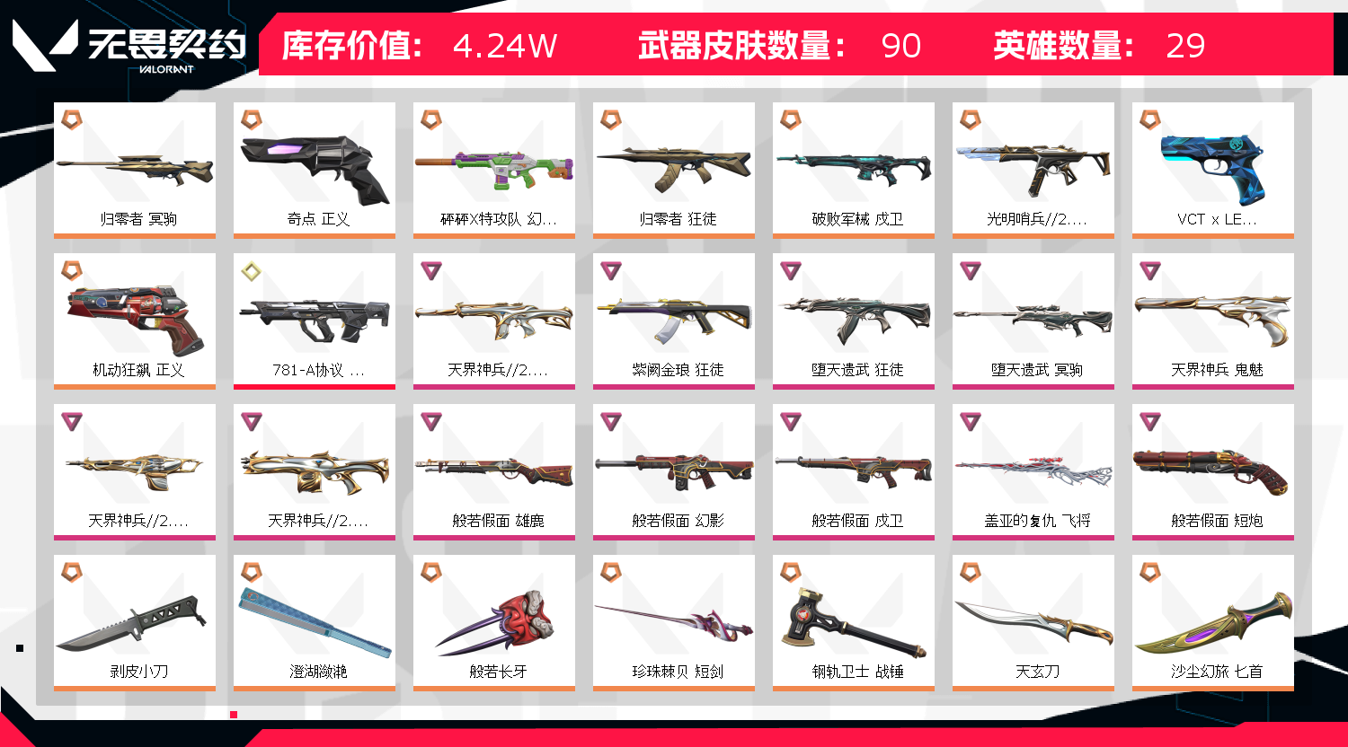 首页 > 租号大厅 > 无畏契约-wegame > wegame/wegame > F 可排位 天界2.0套装 剥皮小刀 鱼扇 归零 堕天 紫金狂徒