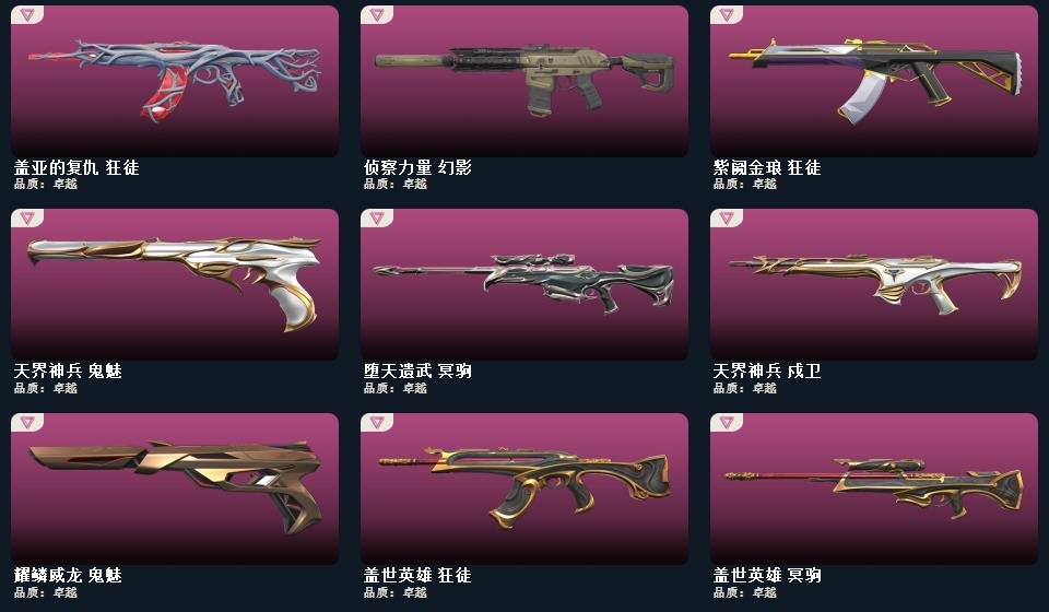 正义-千灵华绽 狂徒-奇点2.0 狂徒-塑水宗 狂徒-光明哨兵 狂徒-洪荒怒焰 幻影-破败军械 幻影-归零者2.0 骇灵-紫阙金琅 狂徒-紫阙金琅 狂徒-堕天遗