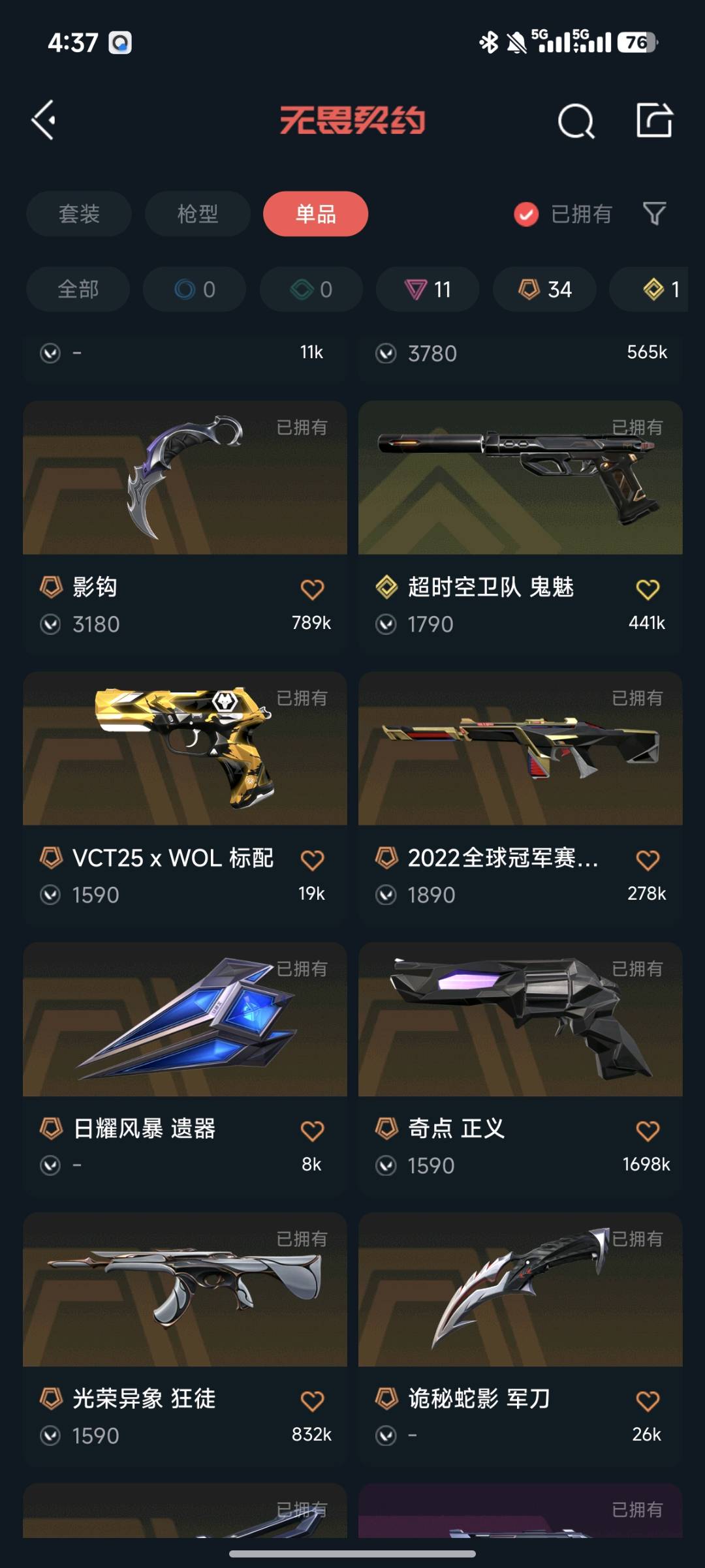 • 皮肤资产价值: 73530