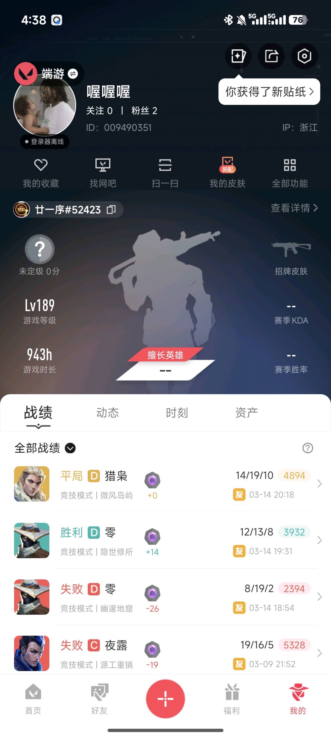 • 游戏区服:无畏契约-wegame / wegame / wegame