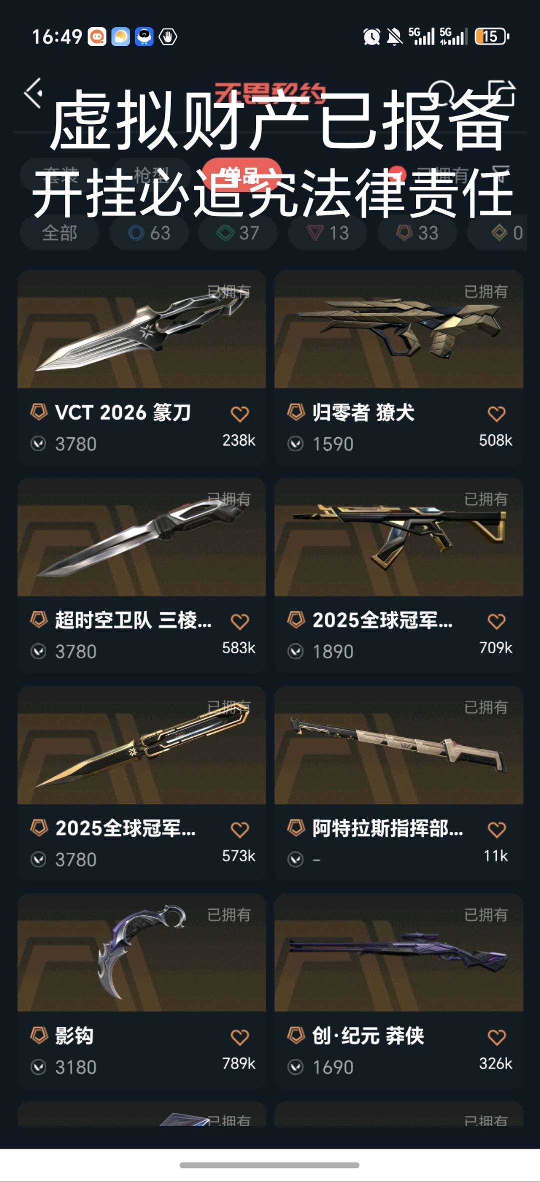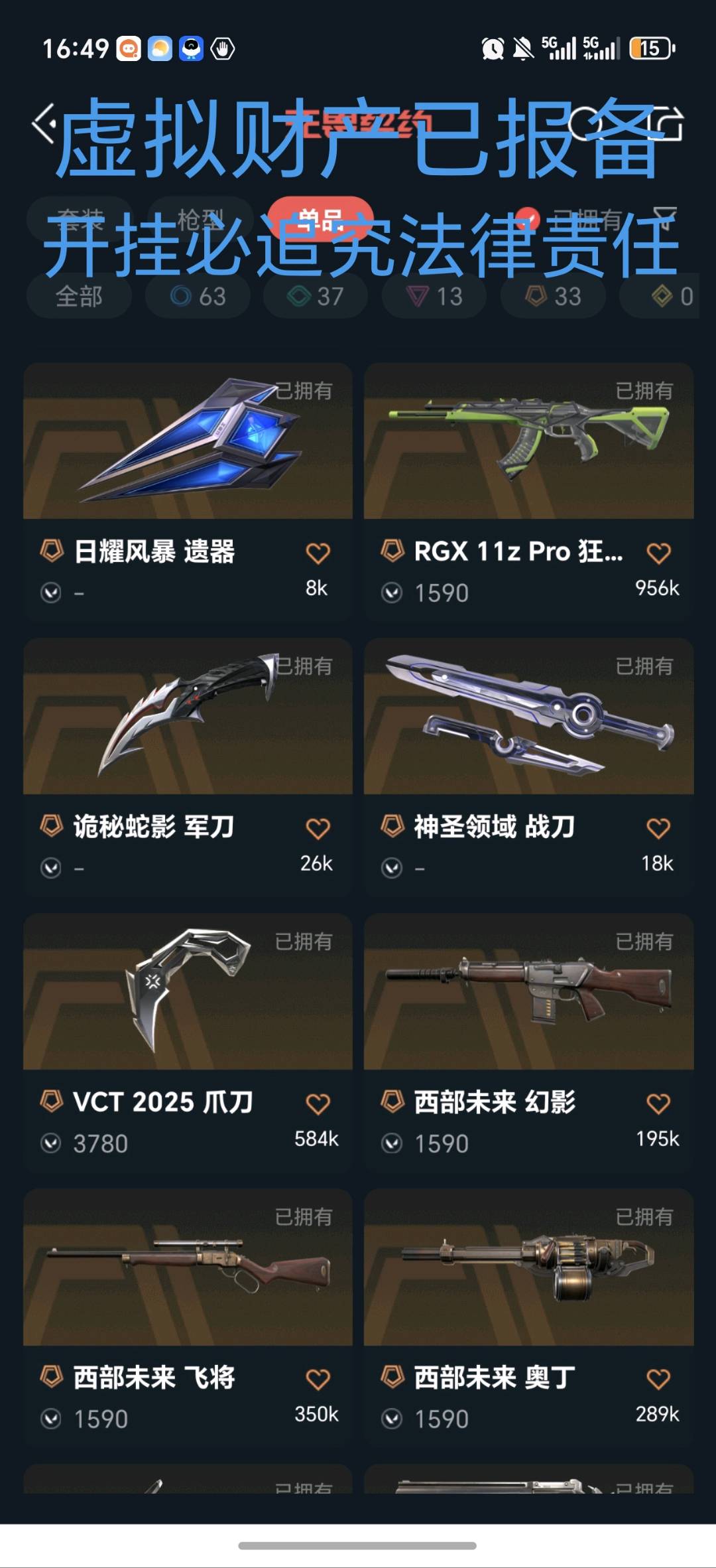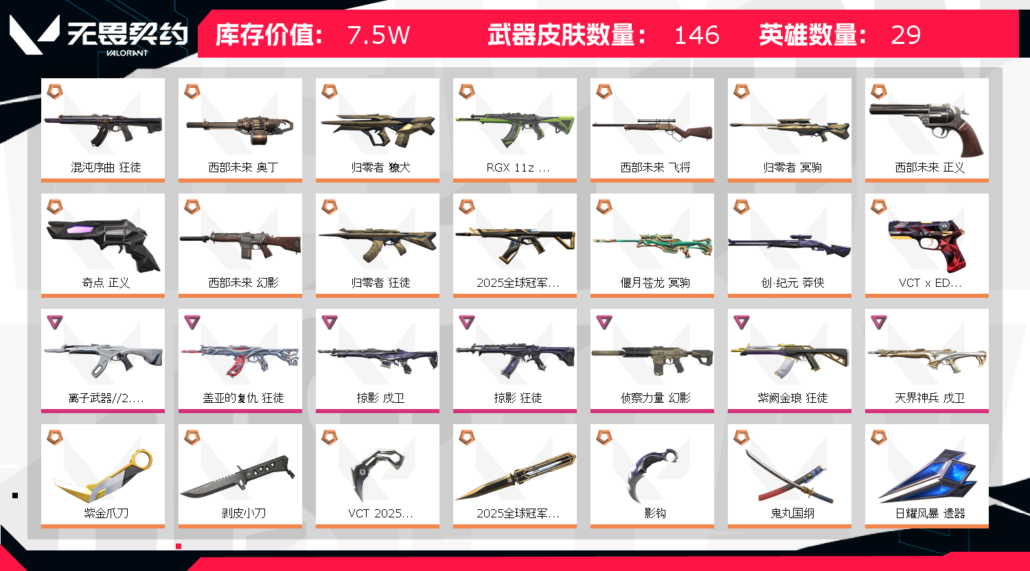开挂必追究法律责任;西部未来 奥丁,紫金爪刀,剥皮小刀,VCT 2025 爪刀,归零者 獠犬,盖亚的复仇 狂徒,掠影 戍卫,