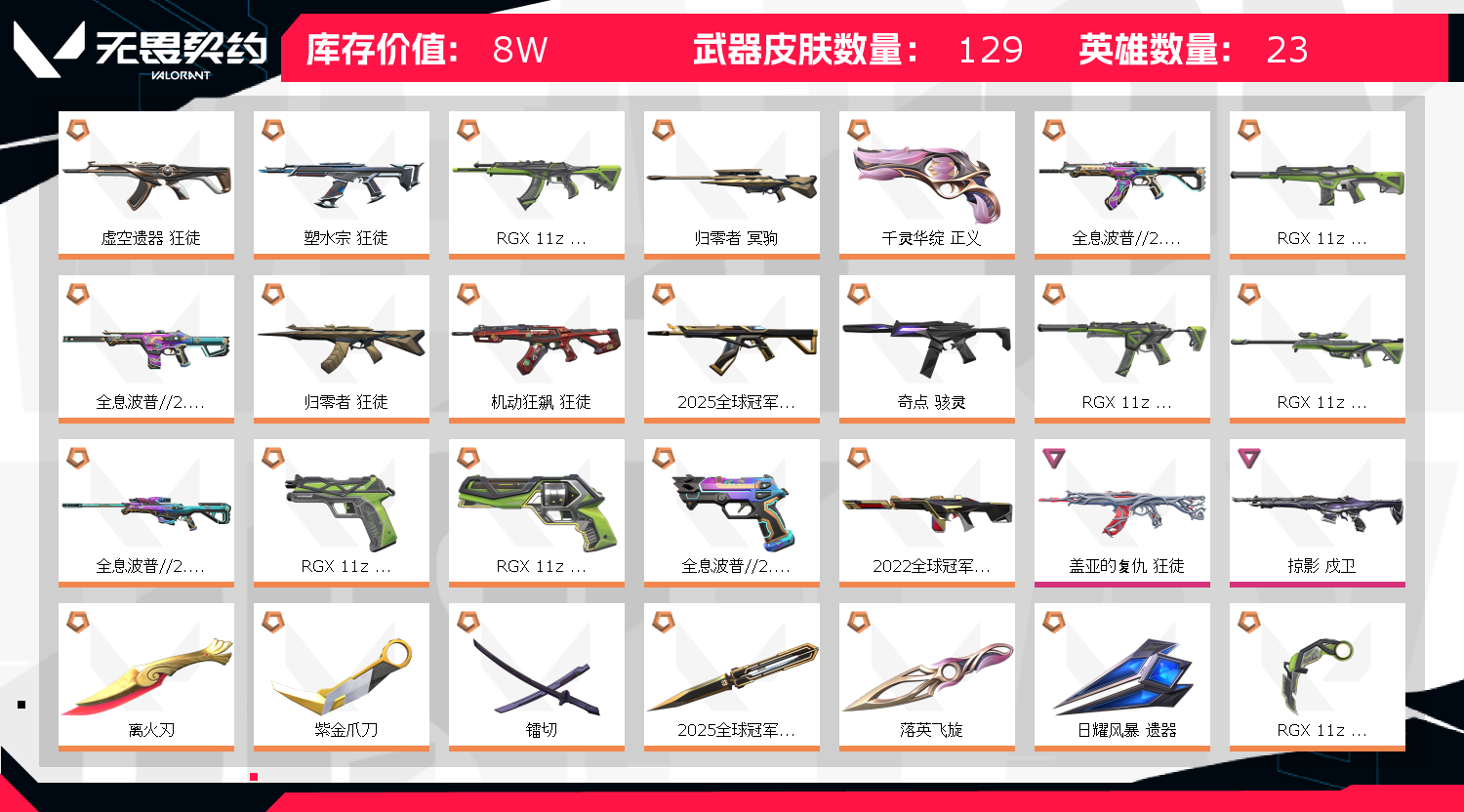 • 武器皮肤数量: 129