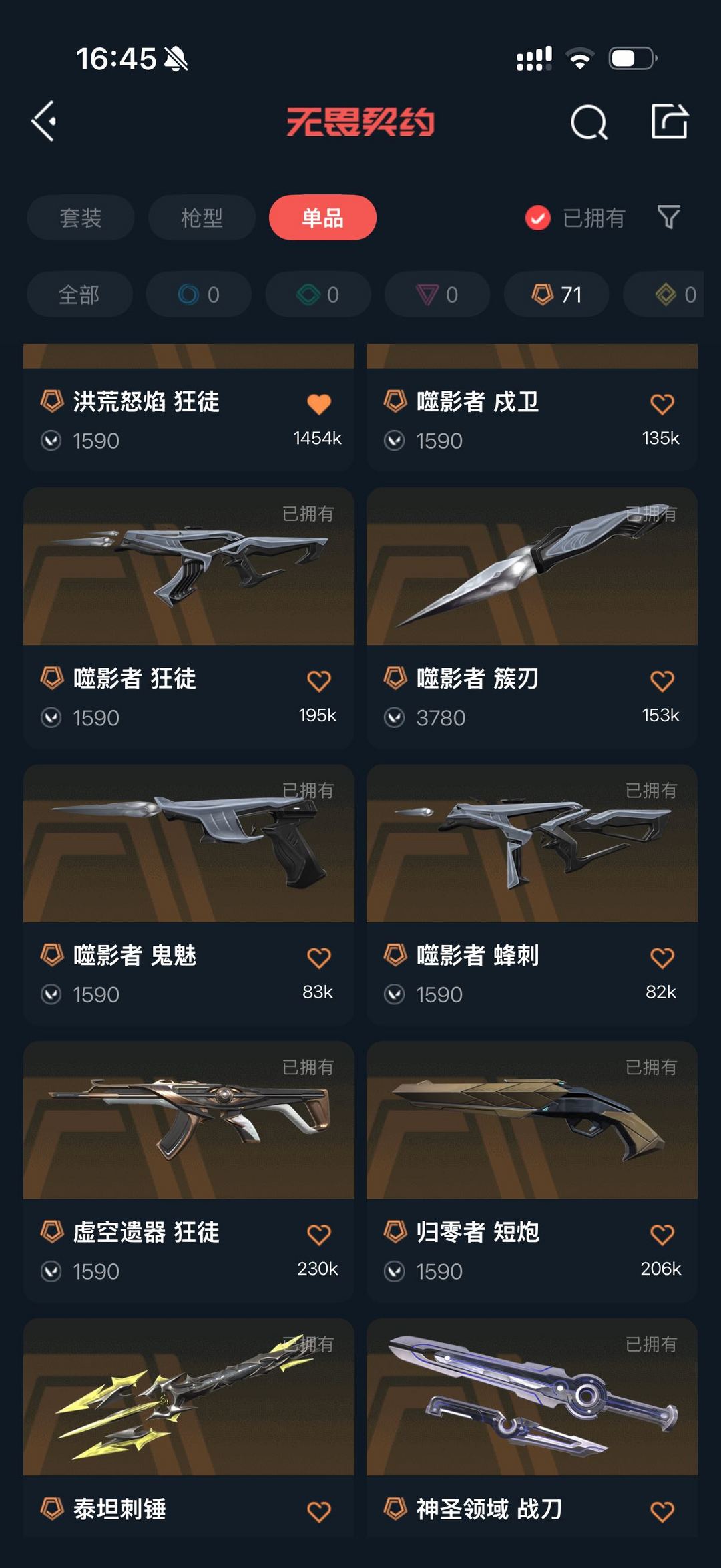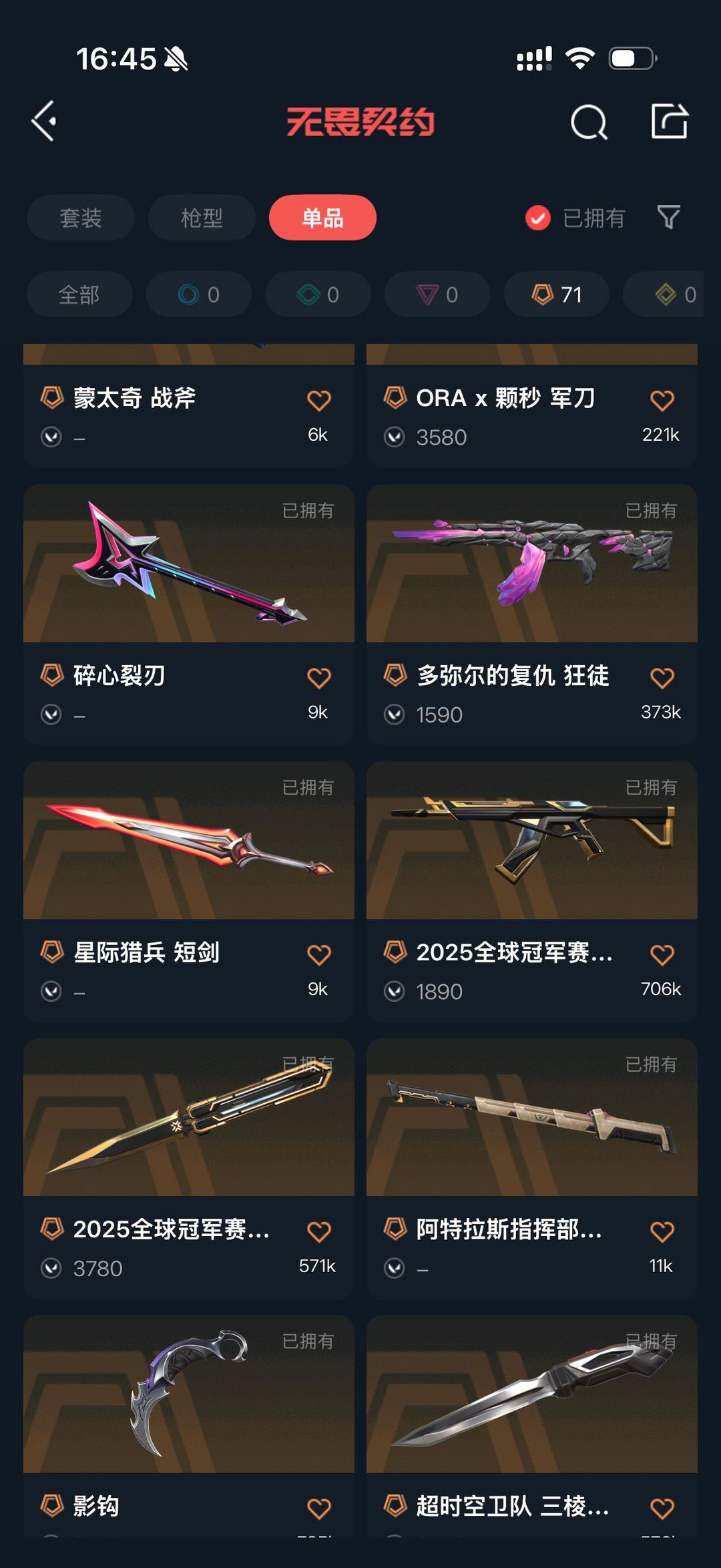 首页 > 租号大厅 > 无畏契约-wegame > wegame/wegame > 颗秒套⭐电玩套掠夺套弃王套噬影套显卡套威龙套蛇年套超时空套装流脓紫金哨兵仓库20万大库存