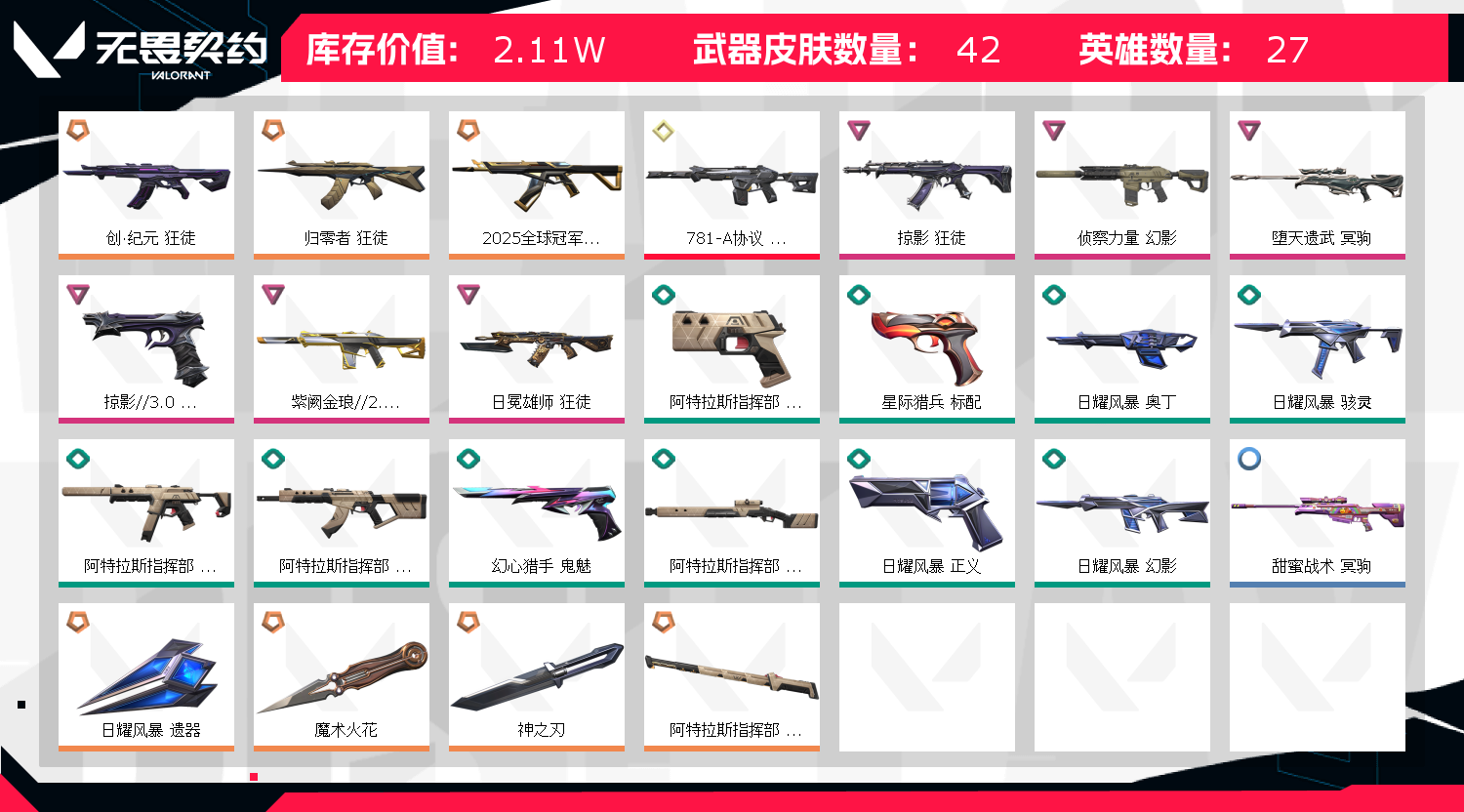 首页 > 租号大厅 > 无畏契约-wegame > wegame/wegame > 25ak+魔术火花+神之刃+侦察幻影+紫金幻影+创纪原ak+归零ak+掠影ak+781幻影+堕天冥狙