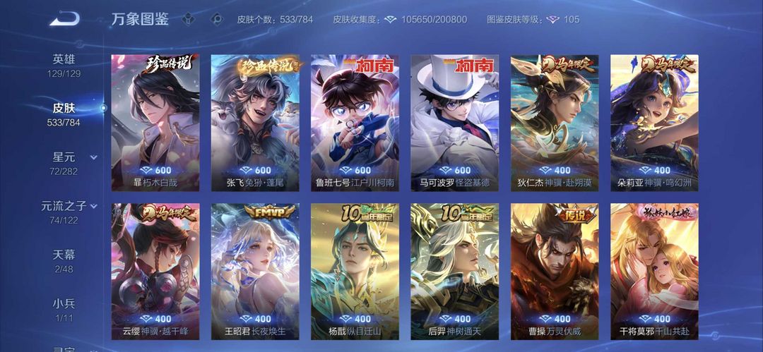 安卓无双贵族十533皮69传10珍品有小兵皮无双猴子凯诸葛3马年珍品貂蝉基德马克干将小红娘元歌诡秘之
