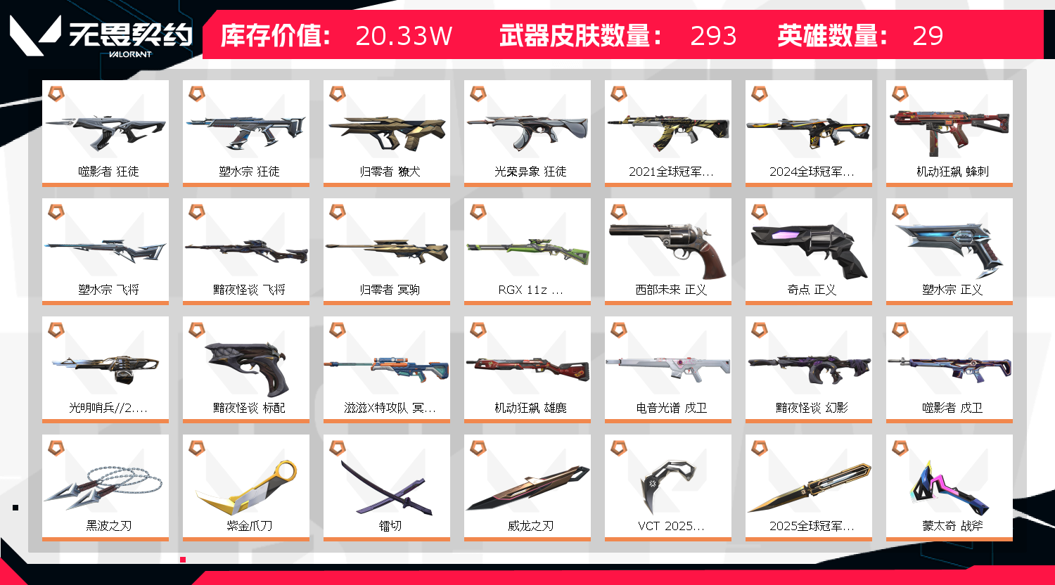 ✅可排位✅20.3w库存292皮✅滋滋光谱套✅摩托归零套✅古神套✅212524冠军套✅vct爪刀纂刀