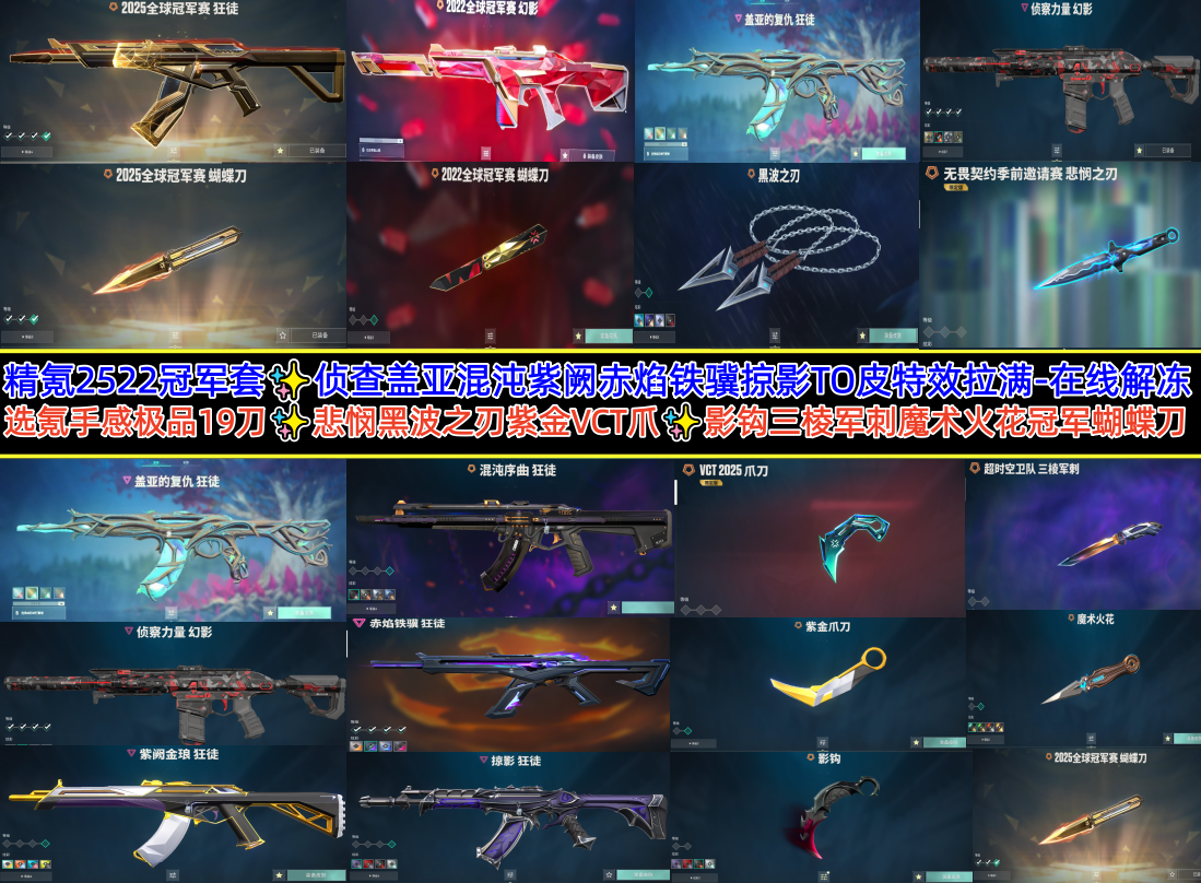 -在线及时解冻- 2522冠军套✨侦察盖亚混沌紫阙炽焰铁骥掠影全TO毕业皮 质量19刀✨悲悯黑波之刃紫金VCT爪✨影钩三棱军刺魔术火花冠军蝴蝶刀;黑波之刃,紫金爪刀,VCT 2025 爪刀,盖亚的复仇 狂徒,虚空遗器 狂徒,掠影 狂徒,侦察力量 幻影,