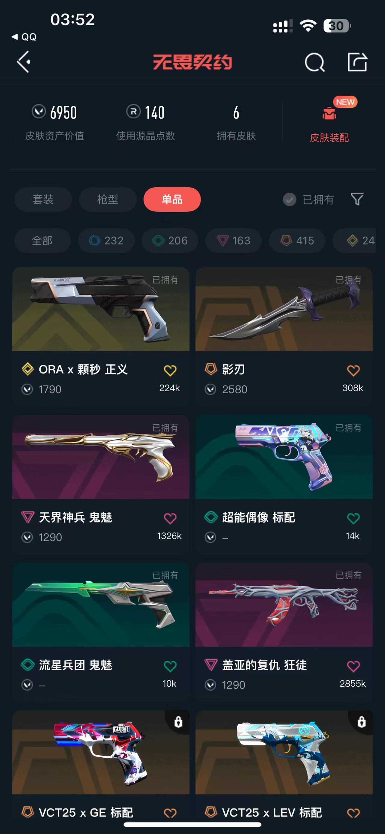 • 皮肤资产价值: 6950