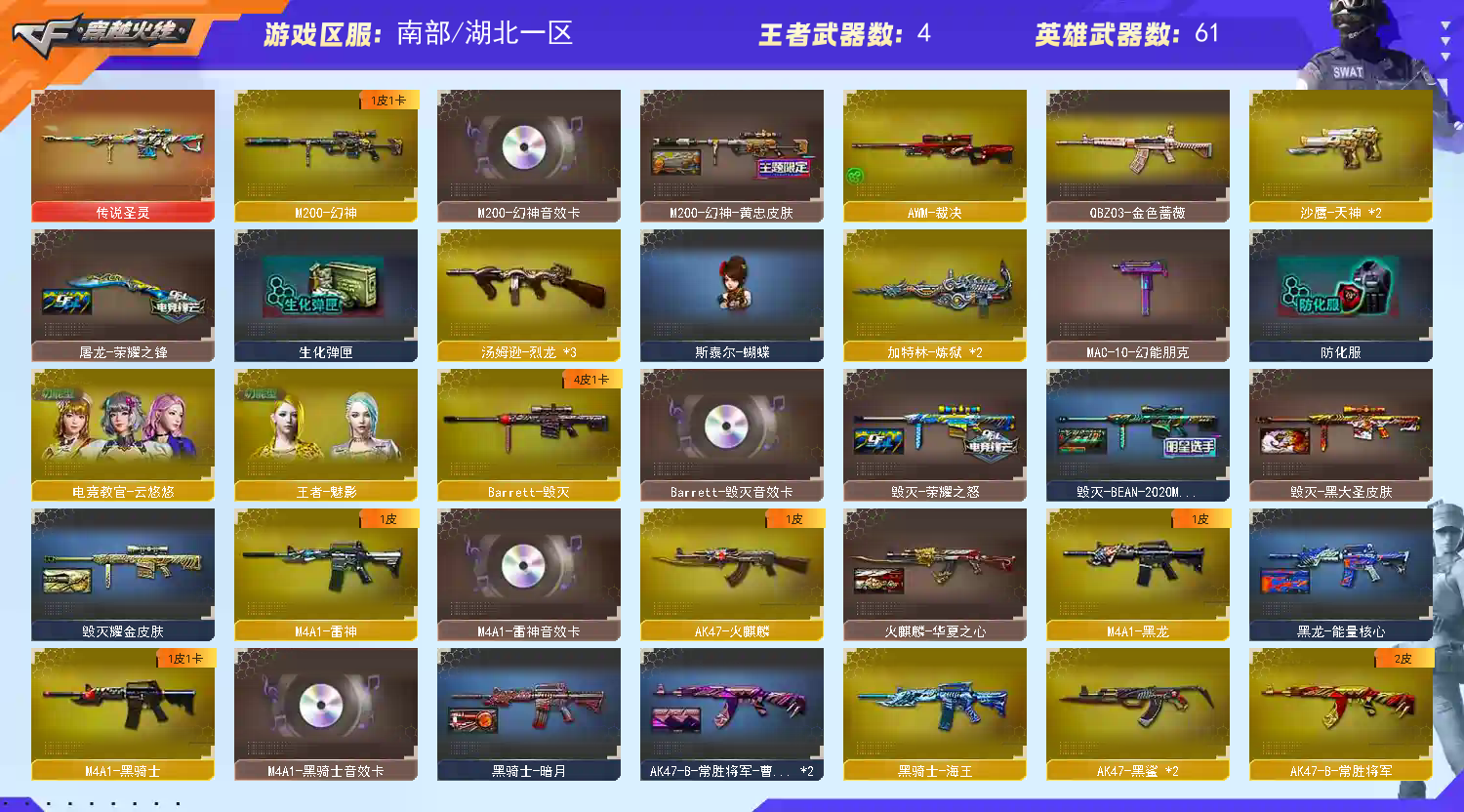 • 游戏区服:穿越火线 / 南部 / 湖北一区
