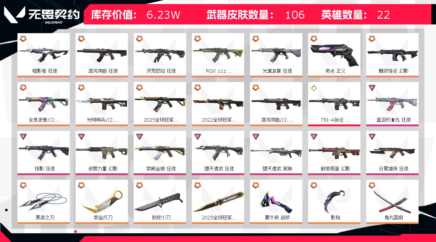 • 武器皮肤数量: 106