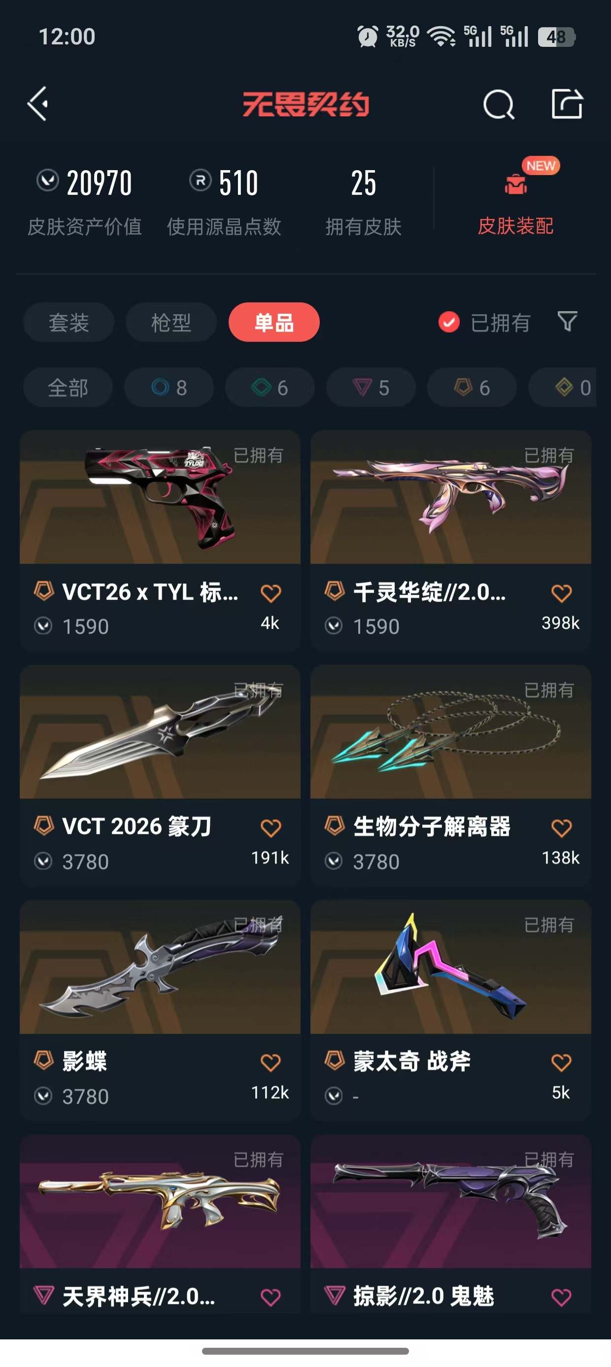 • 皮肤资产价值: 20970