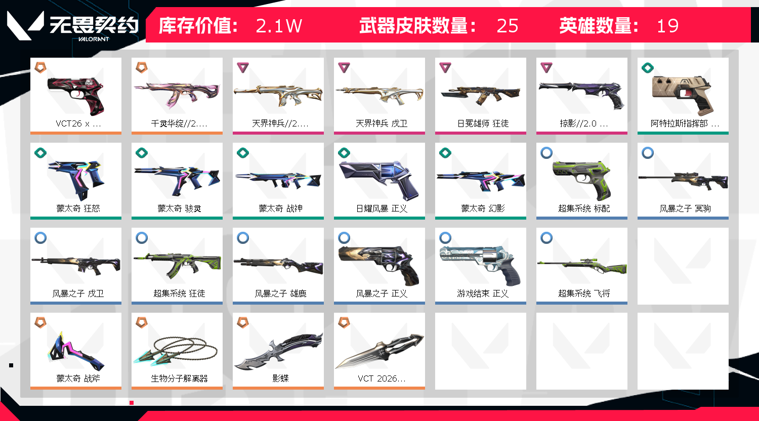 冻结秒解✨VCT 2026篆刀✨影蝶✨千灵华绽 狂徒✨天界神兵 幻影✨天界神兵 戍卫